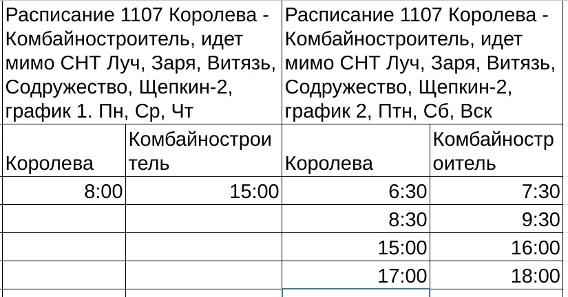маршрут: № 1107 «г. Ростов-на-Дону – СНТ «Комбайностроитель»