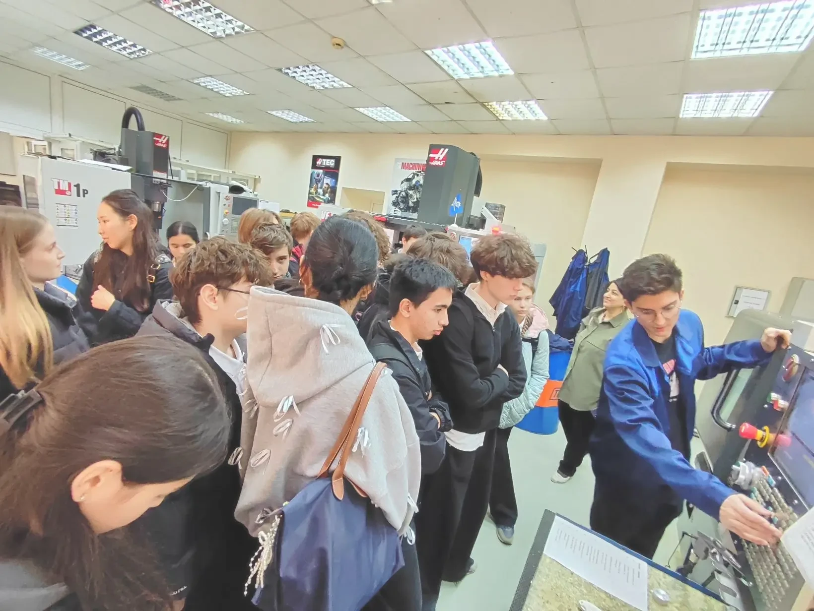 🔧 А 9 «Е» класс посетил Донской промышленно‑технический колледж (ПУ № 8) имени Б. Н. Слюсаря. Ученики побывали в учебных мастерских, познакомились с рабочими профессиями изнутри и поняли, насколько важны и престижны специальности технического профиля.