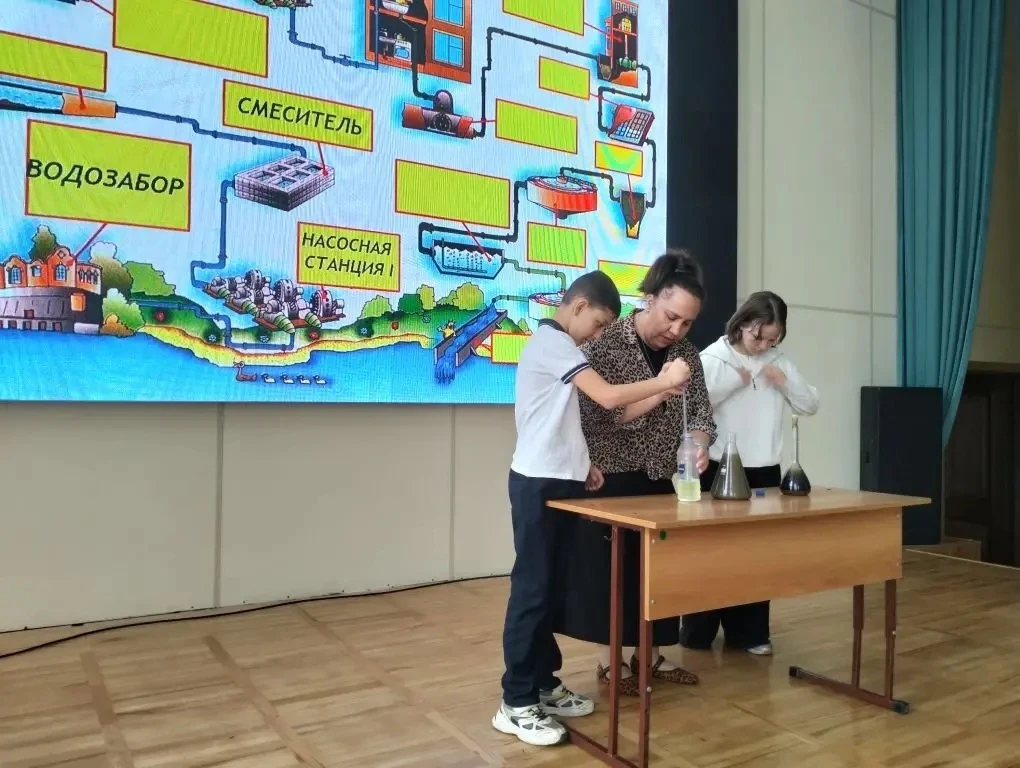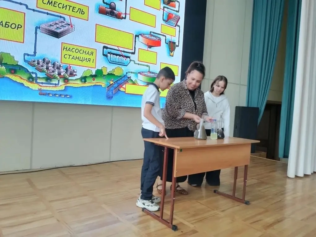 🔹 увидели своими глазами, как происходит очистка воды: специалисты провели интересные опыты прямо в классе;