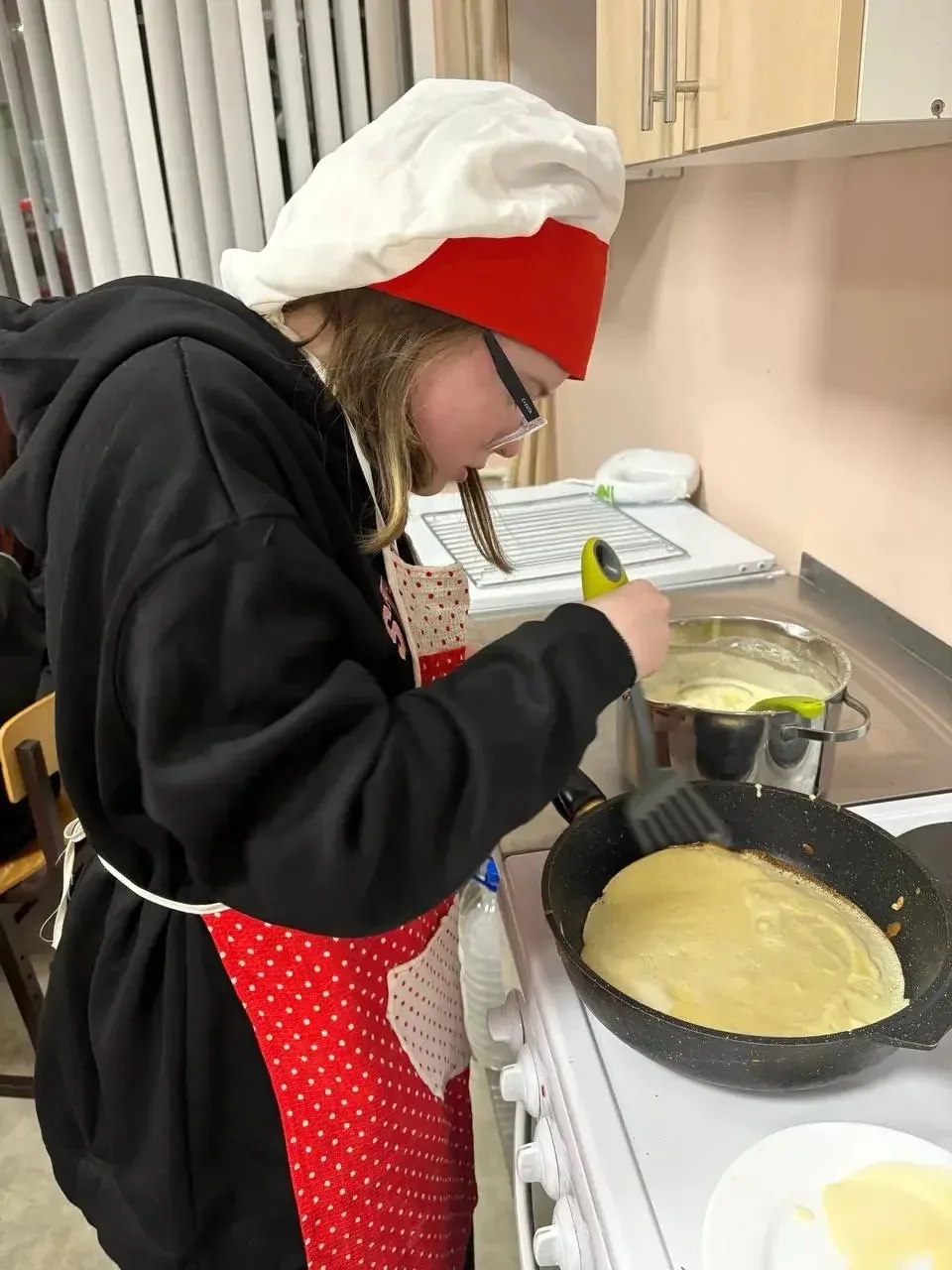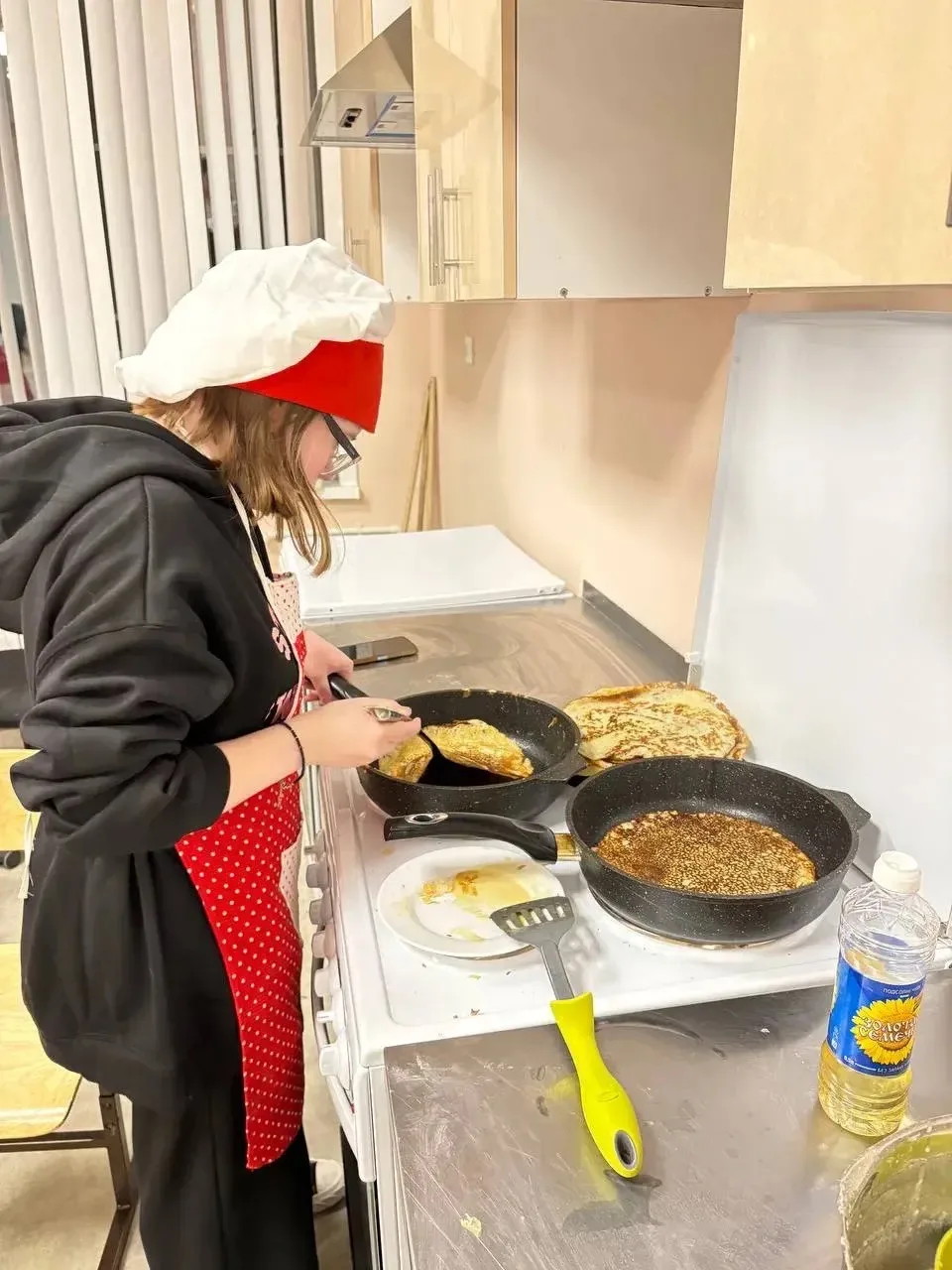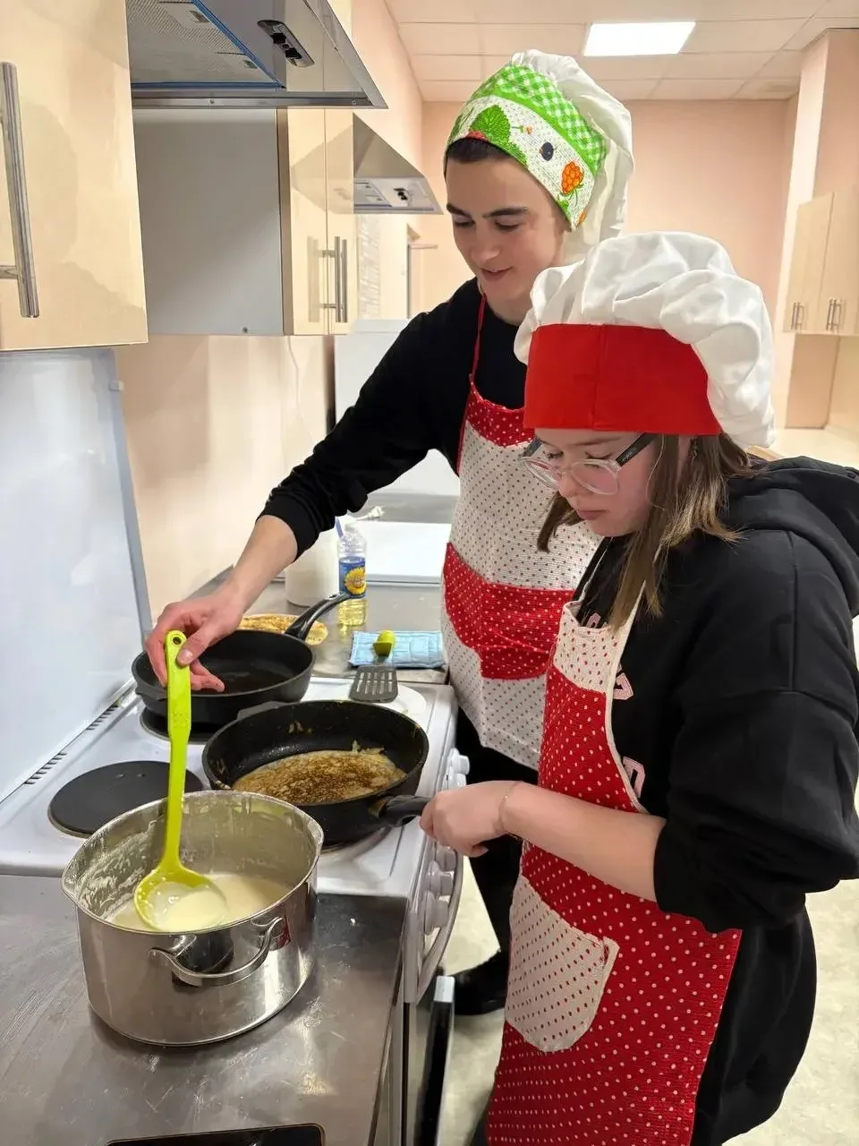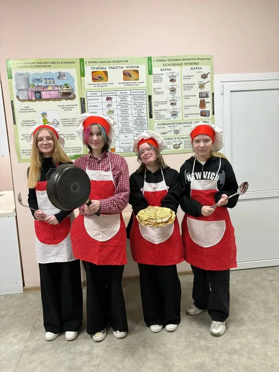 В честь начала Масленицы учитель труда Муравьева Татьяна Александровна вместе с учащимися приготовили ароматные, румяные блины с самыми разными начинками. Ребята с удовольствием приняли участие в процессе: замешивали тесто, учились правильно выпекать блины и красиво их оформлять.