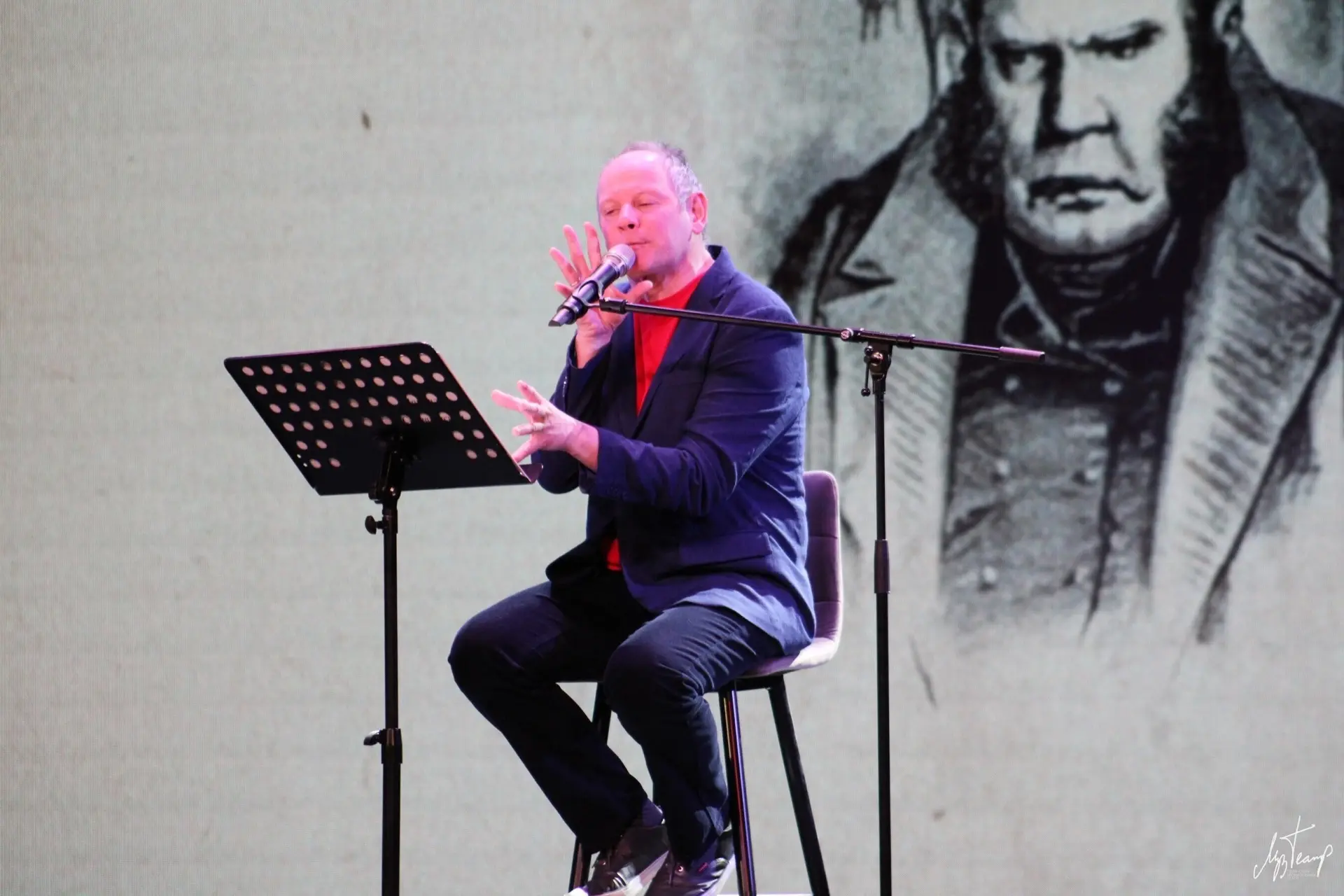 Учащиеся погрузились не просто в прочтение текста, а мощное драматическое действо, где артист не только играет десятки ролей, но и, следуя завету самого Гоголя, обращается к силе музыки.
