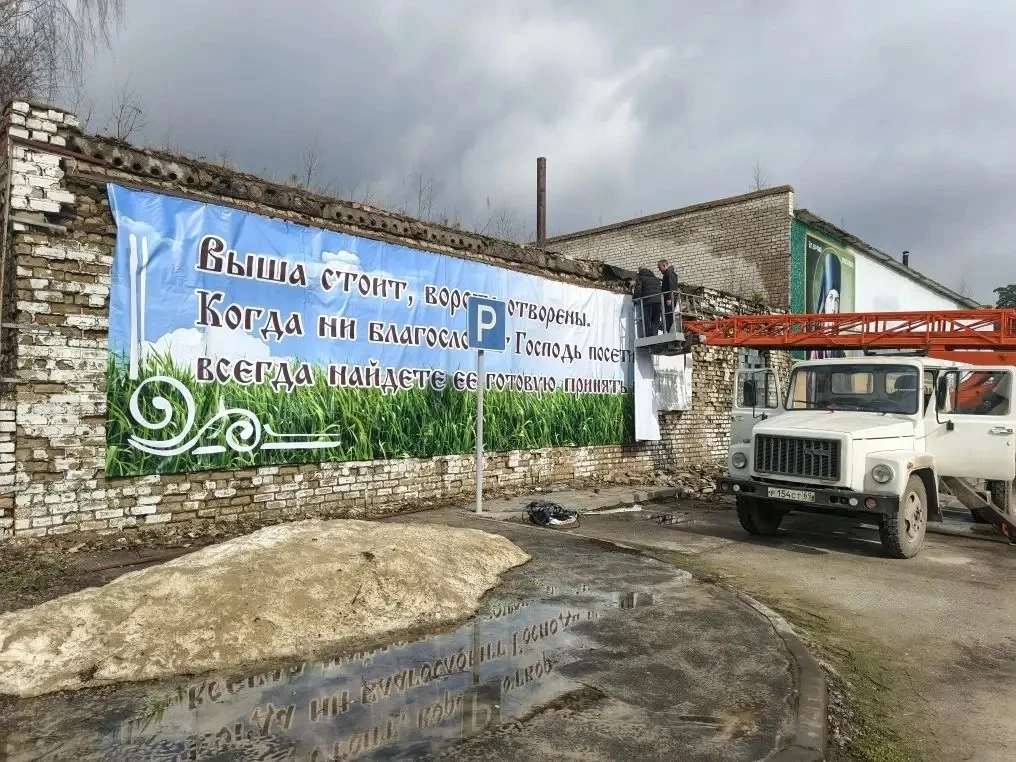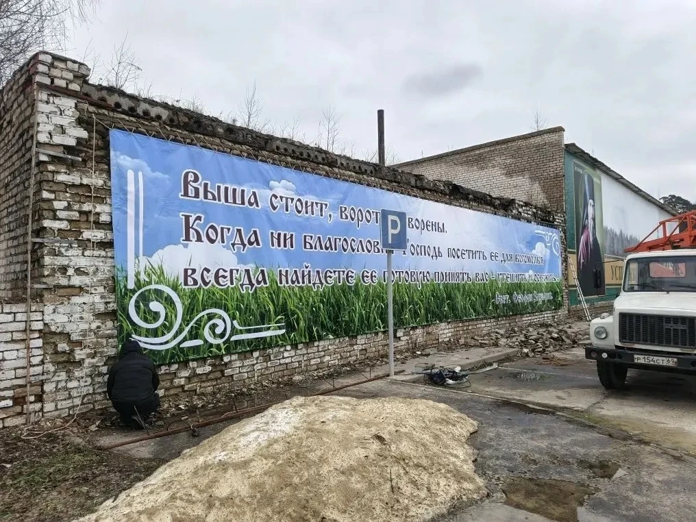 В Успенско – Вышенском женском монастыре, на благотворительной основе, администрацией Шацкого муниципального округа с привлечением ИП Зенкин Р.О. был установлен новый банер, который стал достойной заменой прежнему, пришедшему в полную непригодность из-за суровых зимних погодных условий.