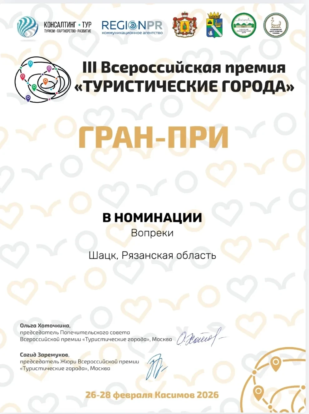 Шацкий муниципальный округ был представлен в номинации «Вопреки», которая отмечает проекты и инициативы, демонстрирующие исключительную устойчивость и приверженность развитию туристической привлекательности. По решению экспертного жюри, делегация Шацкого округа была удостоена высшей награды — Гран-при.