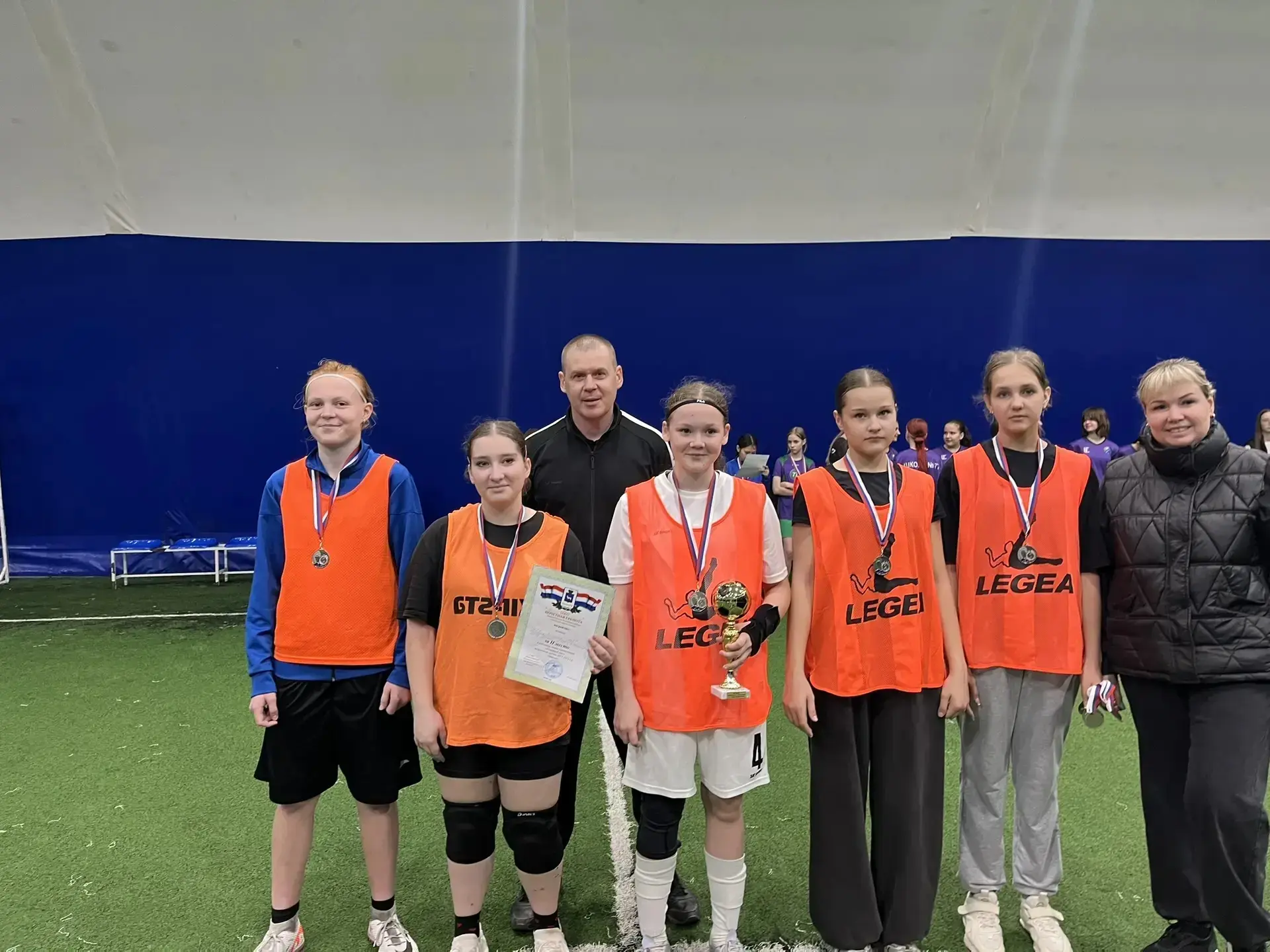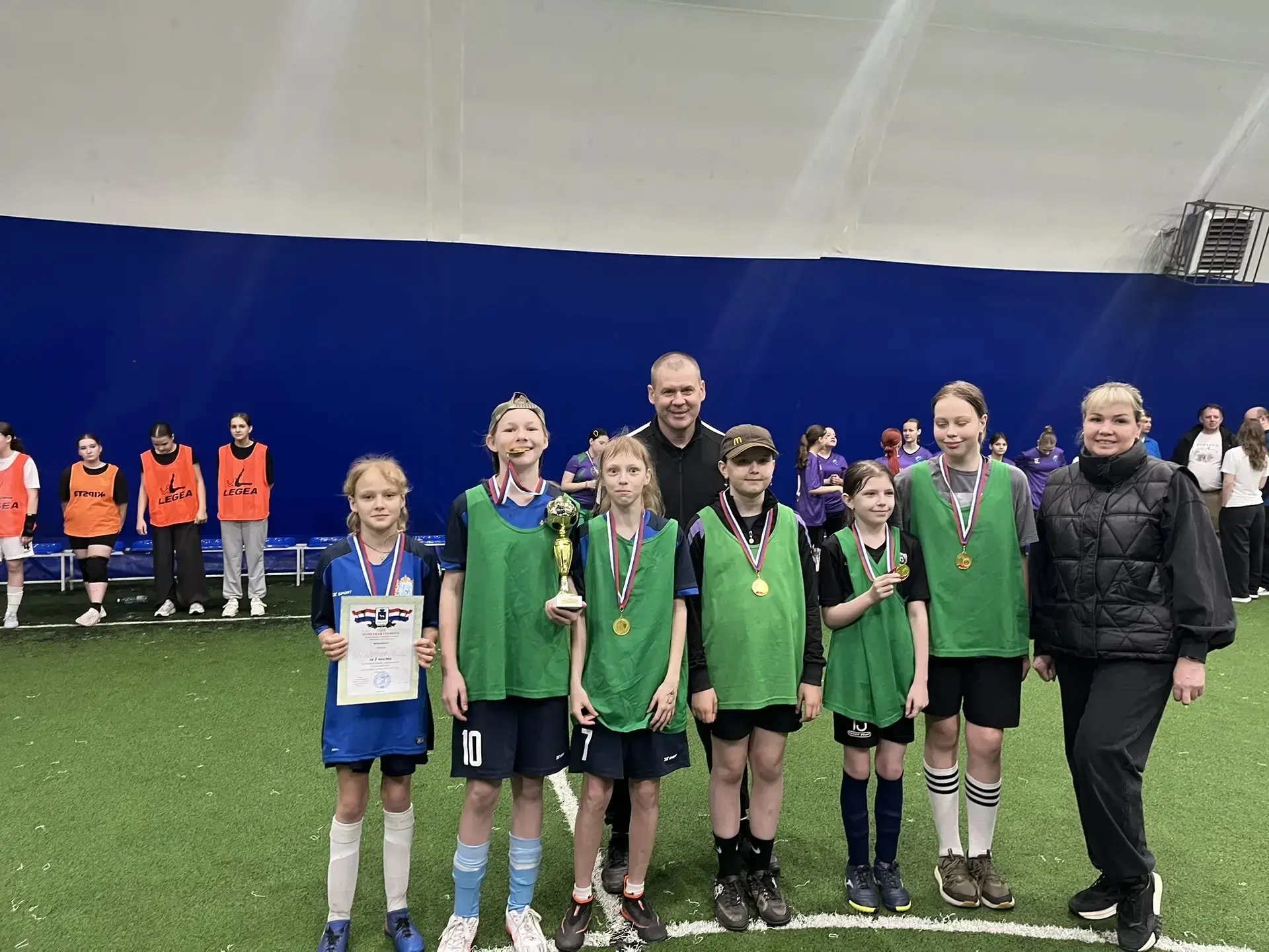 На базе манежа «Луч» прошли районные соревнования по футболу «Кожаный мяч». За победу боролись наши юные спортсменки: младшая команда (2014–2015 г. р.) и старшая (2012–2013 г. р.).