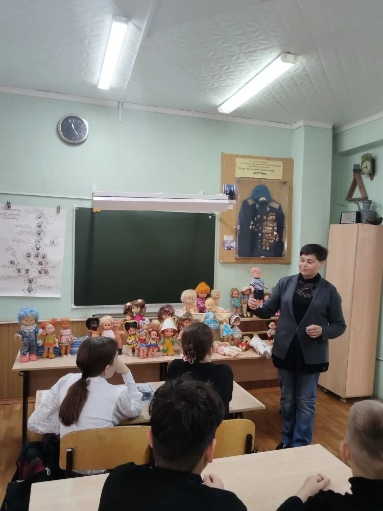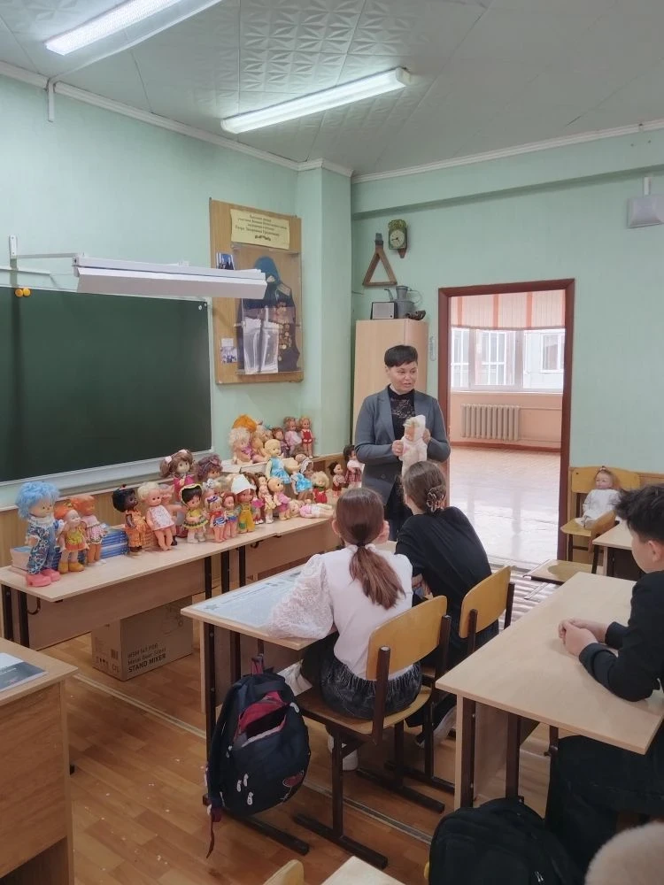 В Год единства народов России ученики 5А и 5Б классов погрузились в удивительный мир традиций на необычном уроке-выставке «Куклы наших бабушек». Ребята узнали, какими были игрушки в разных странах, у разных народов, услышали истории о том, как бабушки создавали кукол своими руками, и даже смогли прикоснуться к настоящим экспонатам. Каждый нашёл свою любимую куклу и сделал на память яркое фото! ✨