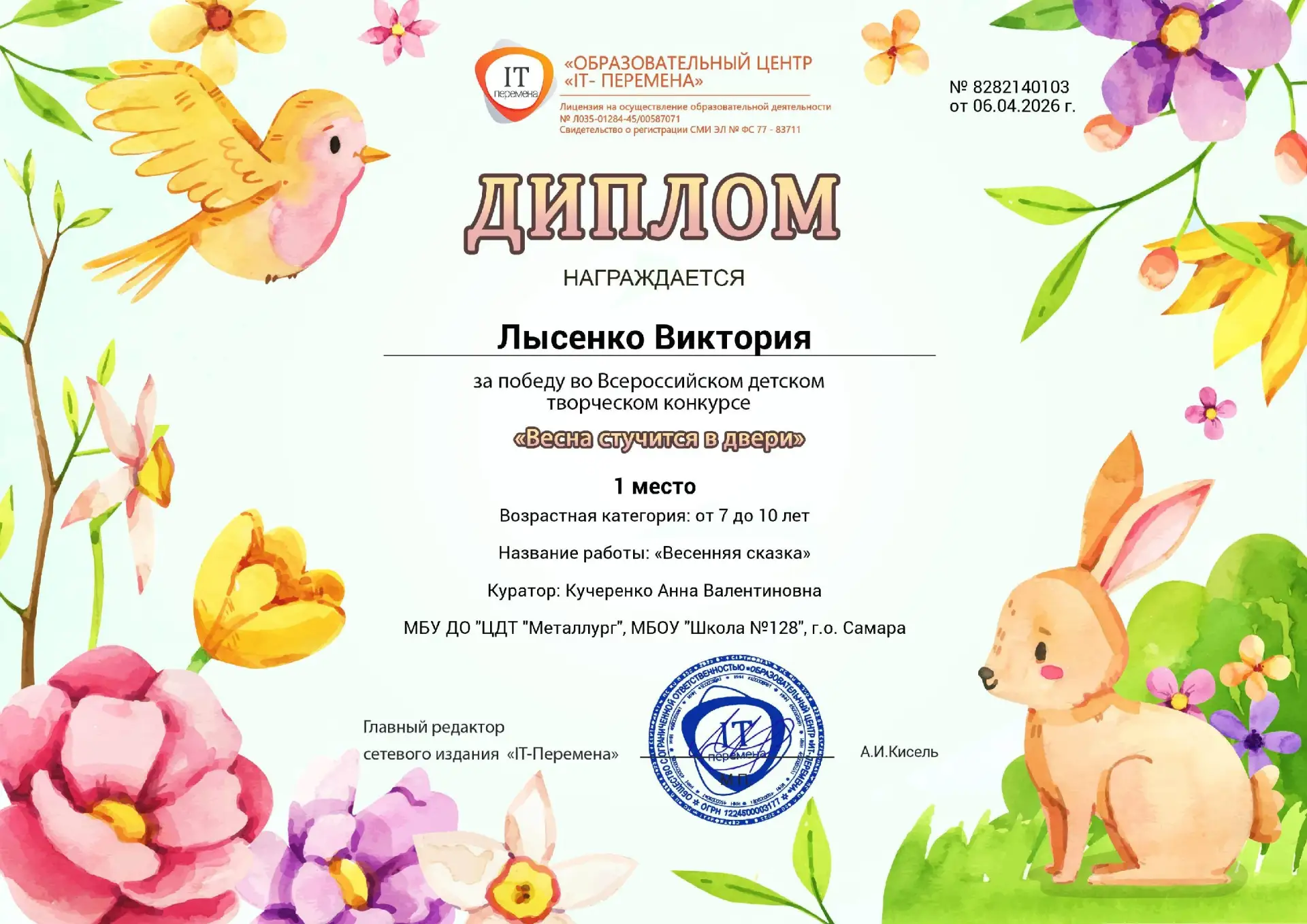 Всероссийский детский творческий конкурс «Весна стучится в двери» собрал самых талантливых ребят со всей страны, и мы с гордостью сообщаем, что наши участники стали победителями!