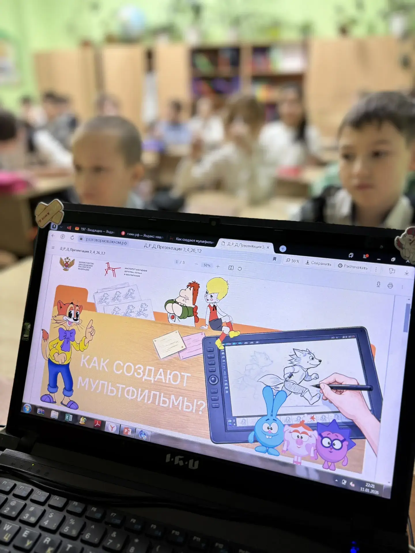 Тема уроков — «Как создаются мультфильмы?». Школьники обсудили, из каких шагов складывается создание мультфильма, какие специалисты участвуют в работе и почему для анимации так важны терпение, внимание к деталям и умение работать в команде.