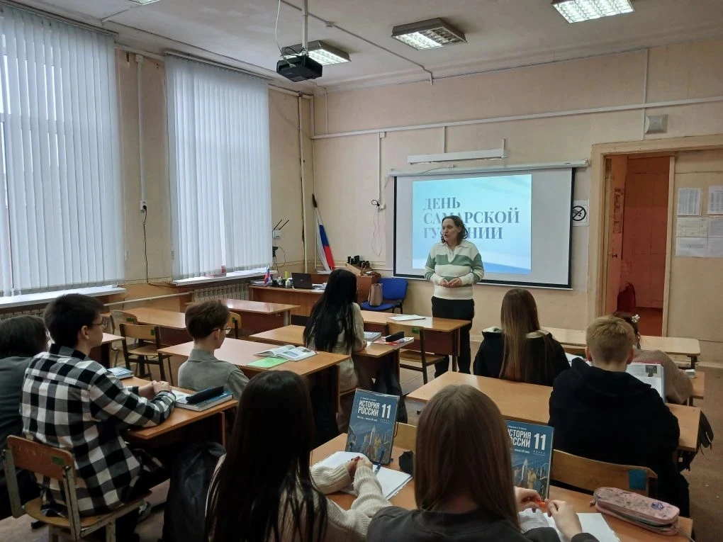 В рамках урока в #деньсамарскойгубернии учитель истории Сорокина С. В. рассказала ученикам о том, что Самарская губерния появилась 1 января (13 января по новому стилю) 1851 года в соответствии с Указом императора Николая I, а также поделилась историей ее становления