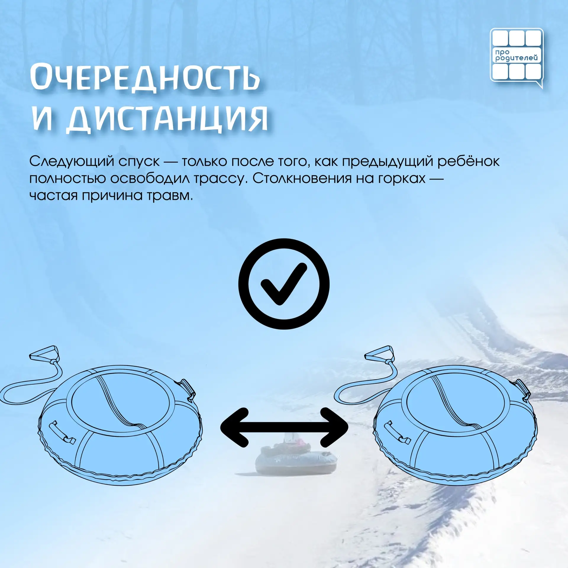 ☑Мы подготовили эти карточки, чтобы помочь родителям спокойно и понятно обсудить с детьми основные правила катания на тюбингах и горках. Соблюдение этих простых рекомендаций поможет сохранить зимний отдых радостным, а главное — безопасным.