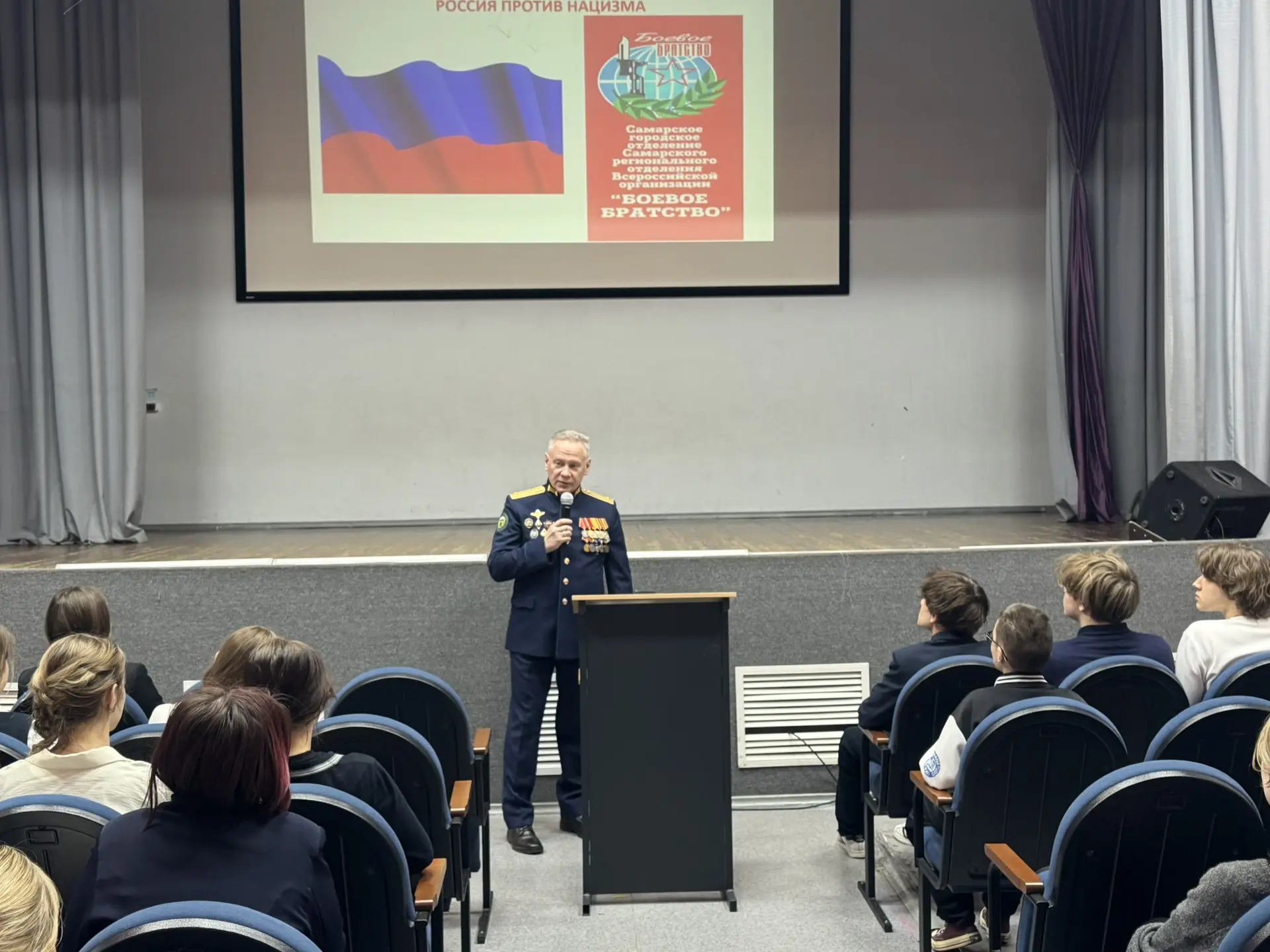 Одним из знаковых событий прошедшей предпраздничной недели был Урок Мужества, который прошел 18 февраля. Ученики 9 - 11 классов встретились с человеком, которого можно назвать " героем нашего времени" 🇷🇺🇷🇺🇷🇺- участником боевых действий, руководителем Самарского городского отделения Всероссийской общественной организации Боевое Братство , подполковником Владимиром Евгеньевичем Харьковым. Ребята,педагоги были сразу впечатлены количеством наград Владимира Евгеньевича. Рассказ о принятом ещё в детстве решении быть военным, об учебе в Вольском военном училище, службе и участии в боевых действиях , о решении участвовать в СВО тоже произвели сильное впечатление. Владимир Евгеньевич рассказал о жизни и боевых действиях участников СВО, показал фотографии 🎞 и несколько трофеев с передовой. Конечно, общение переросло в беседу, Владимир Евгеньевич подробно ответил на вопросы ребят.
