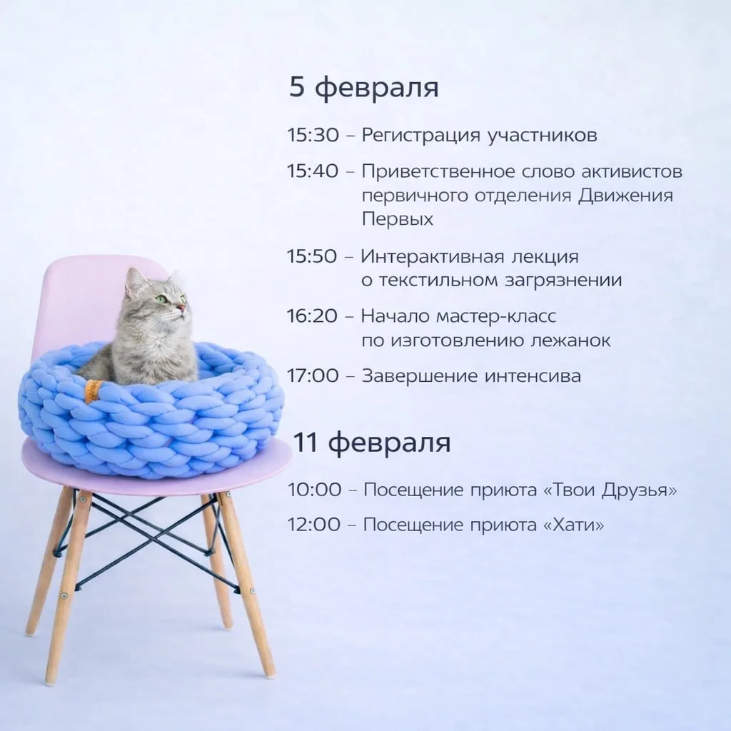 🐾 5 февраля в 15:30 на мастер-классе мы научимся изготавливать лежанки для животных из старой, ненужной одежды.