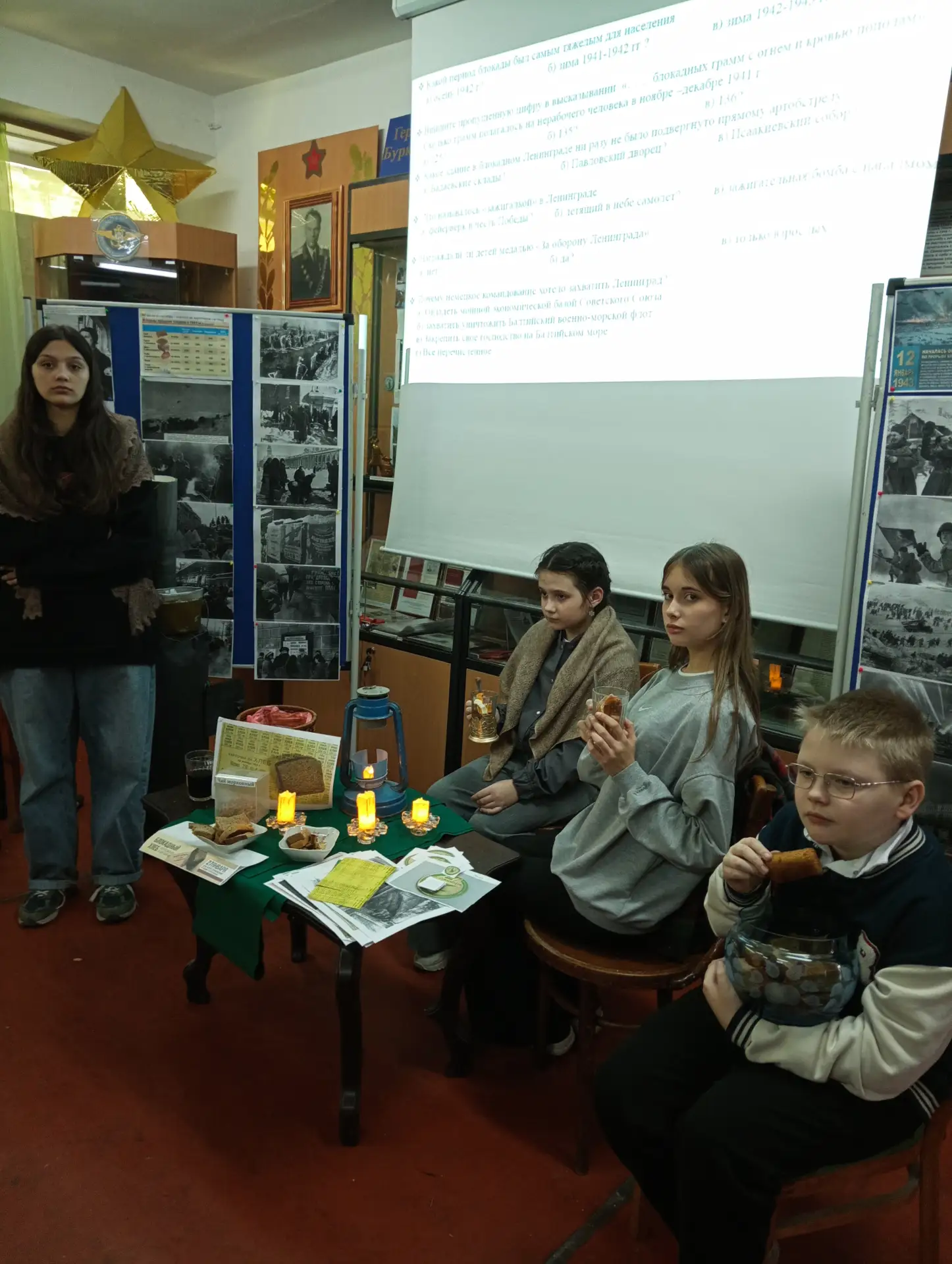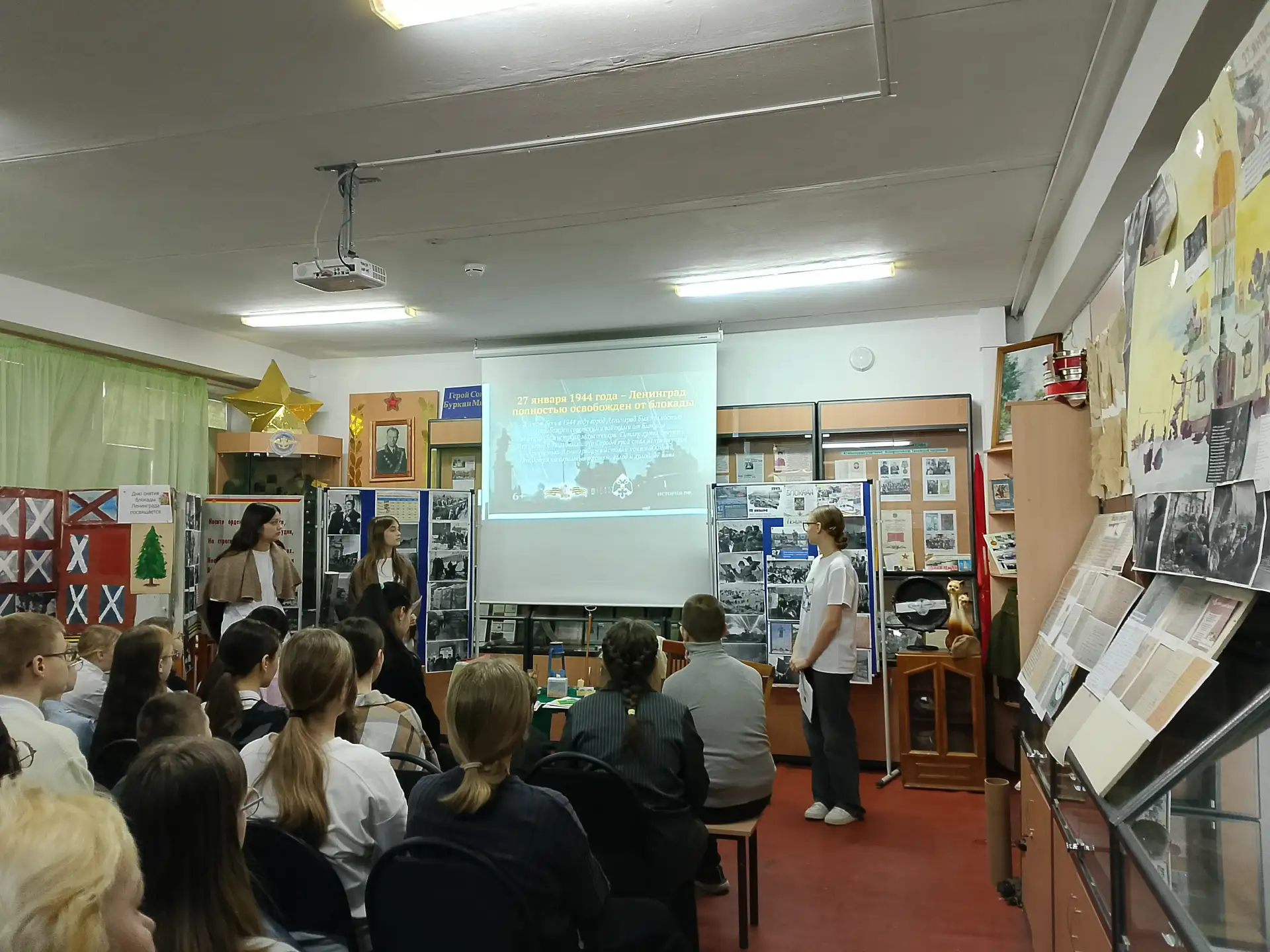 В честь 82-й годовщины полного освобождения Ленинграда от фашистской блокады актив школьного музея Боевой славы «Куйбышевцы — участники Новороссийско-Таманской операции» подготовил для обучающихся театрализованную экскурсию. Именно 27 января 1944 года ленинградцы окончательно разорвали вражеское кольцо, доказав всему миру, что волю этого города невозможно сломить.