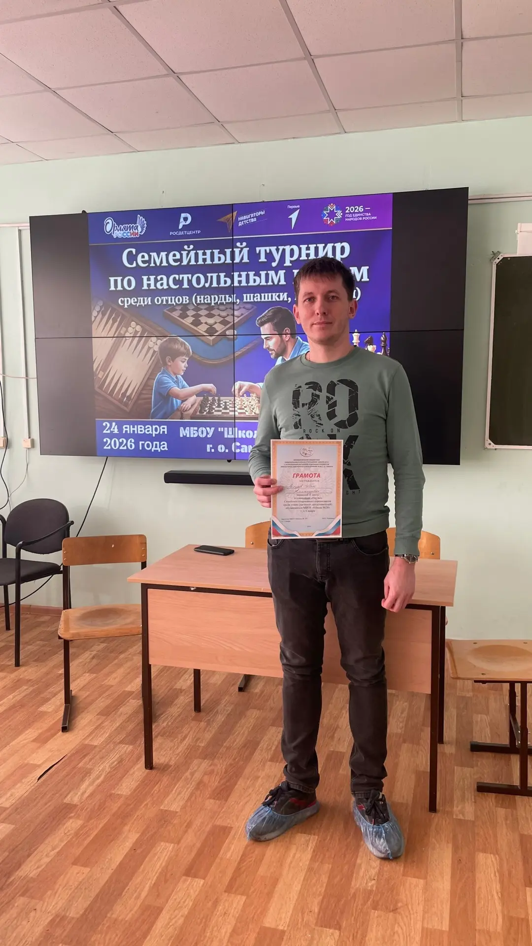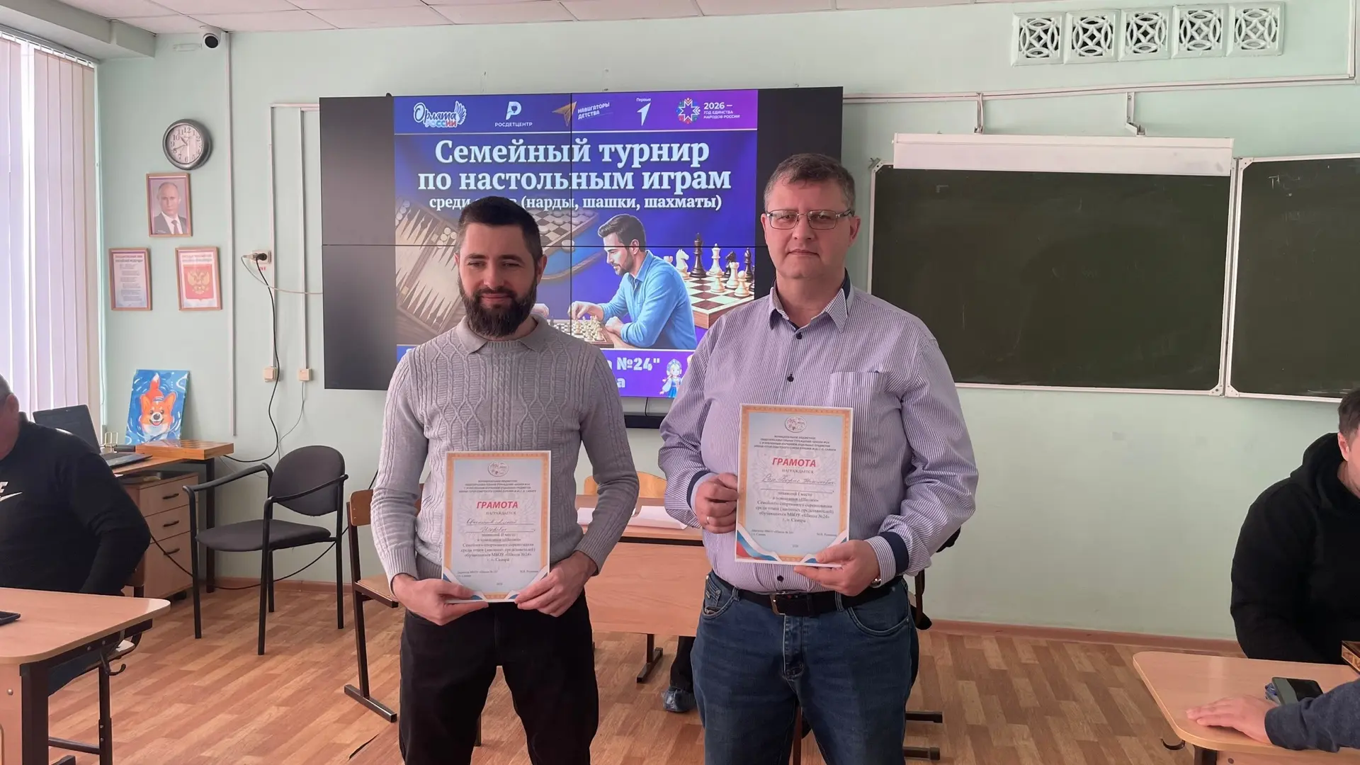 В нашей школе прошло семейное соревнование по настольным играм среди отцов (законных представителей)! Нарды, шашки, шахматы — и море азарта! 🎲♟️🔥