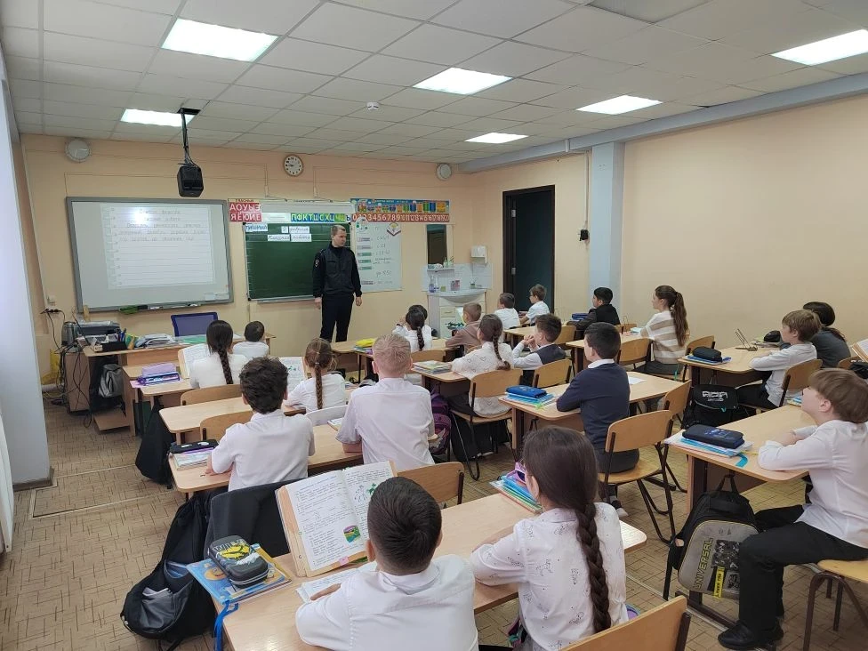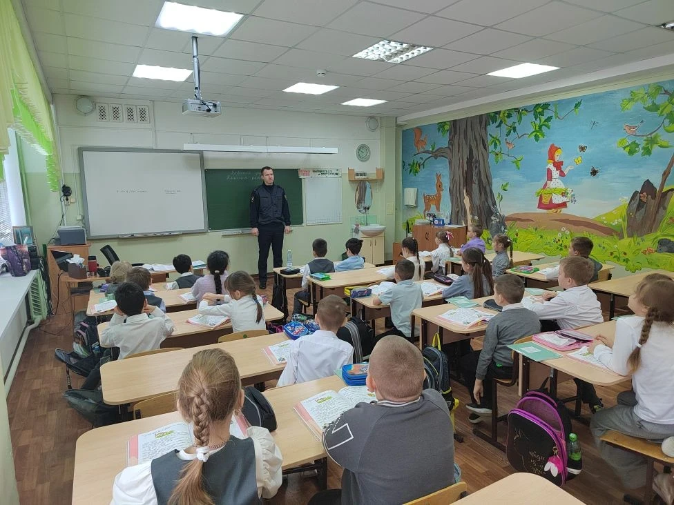 Старший государственный инспектор БДД РЭО ГИБДД У МВД России по г. Самаре, старший лейтенант полиции Семыкин Д.Г., встретился с малышами 1-4 классов! 😊