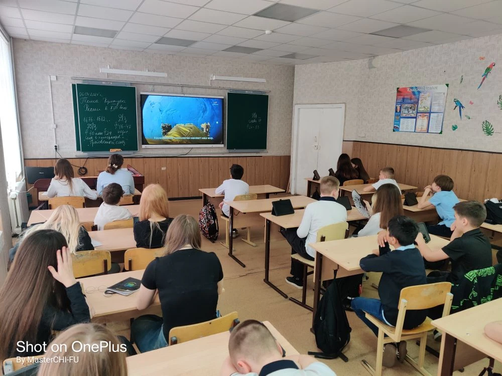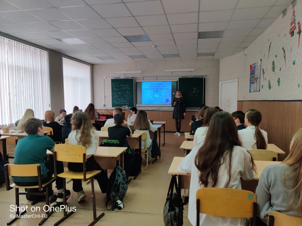 В рамках Недели космоса, приуроченной к празднованию 65-летия первого полета человека в космос в 7в классе прошел классный час "Космос - это мы" . Учащиеся вспомнили историю освоения космоса, имена известных космонавтов и первооткрывателей космического пространства, расширили знания о Солнечной системе. В завершении урока ребята приняли активное участие в познавательной викторине