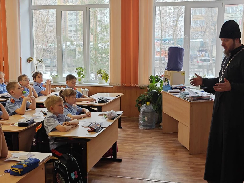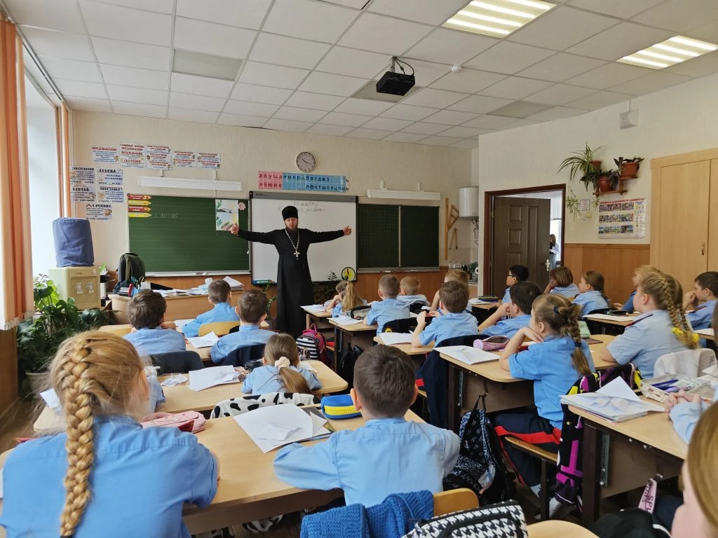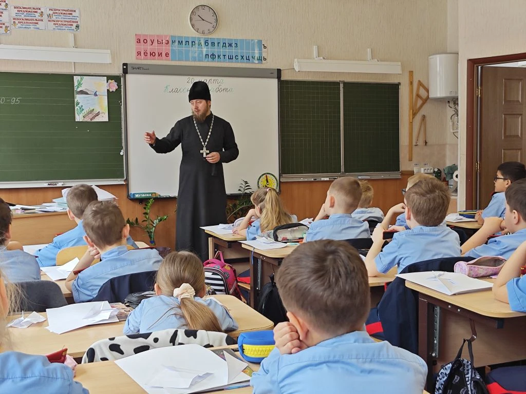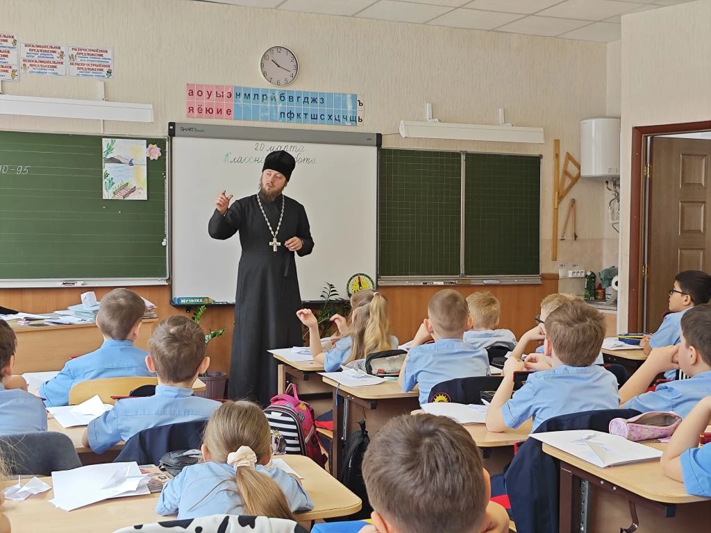 Отец Максим в доступной и увлекательной форме рассказал ребятам о том, как важно быть внимательными друг к другу, помогать тем, кто оказался в трудной ситуации, и всегда поступать по совести. Ученики с интересом слушали, задавали вопросы и делились своими мыслями о том, что для них значит быть добрым и честным человеком.