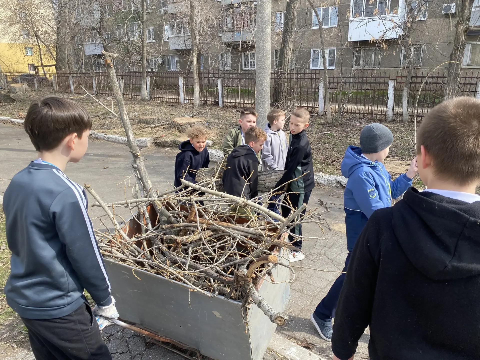 В апреле стартовал масштабный весенний субботник. Все обучающие выходят на пришкольные участки и наводят чистоту и порядок. 🧹Ученики 4Б класса начали убирать сучки деревьев и кустарников после осеннего спила. 🪚🪓Цель субботника — не только очистка территории школы от мусора, но и воспитание и привитие трудовой и экологической культуры подрастающему поколению.
