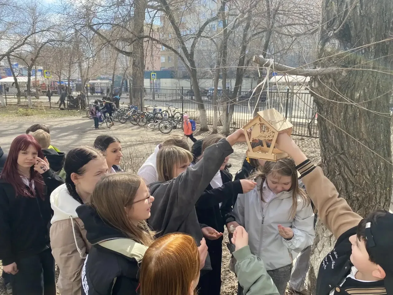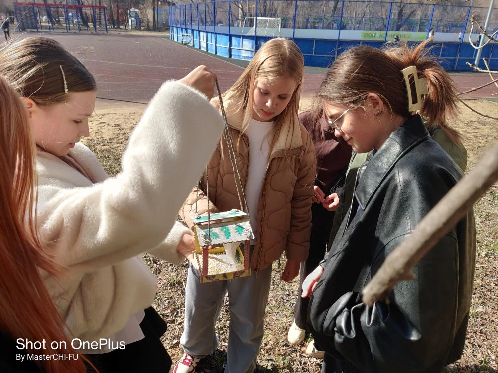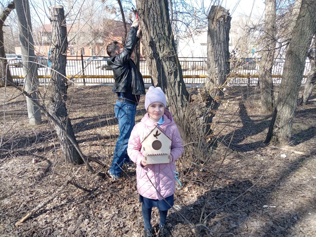 Учащиеся 6 А класса приняли участие в региональной акции "Птичий домик". Сделали доброе дело, позаботились о наших пернатых друзьях: повесили домик для птиц, насыпали корм.