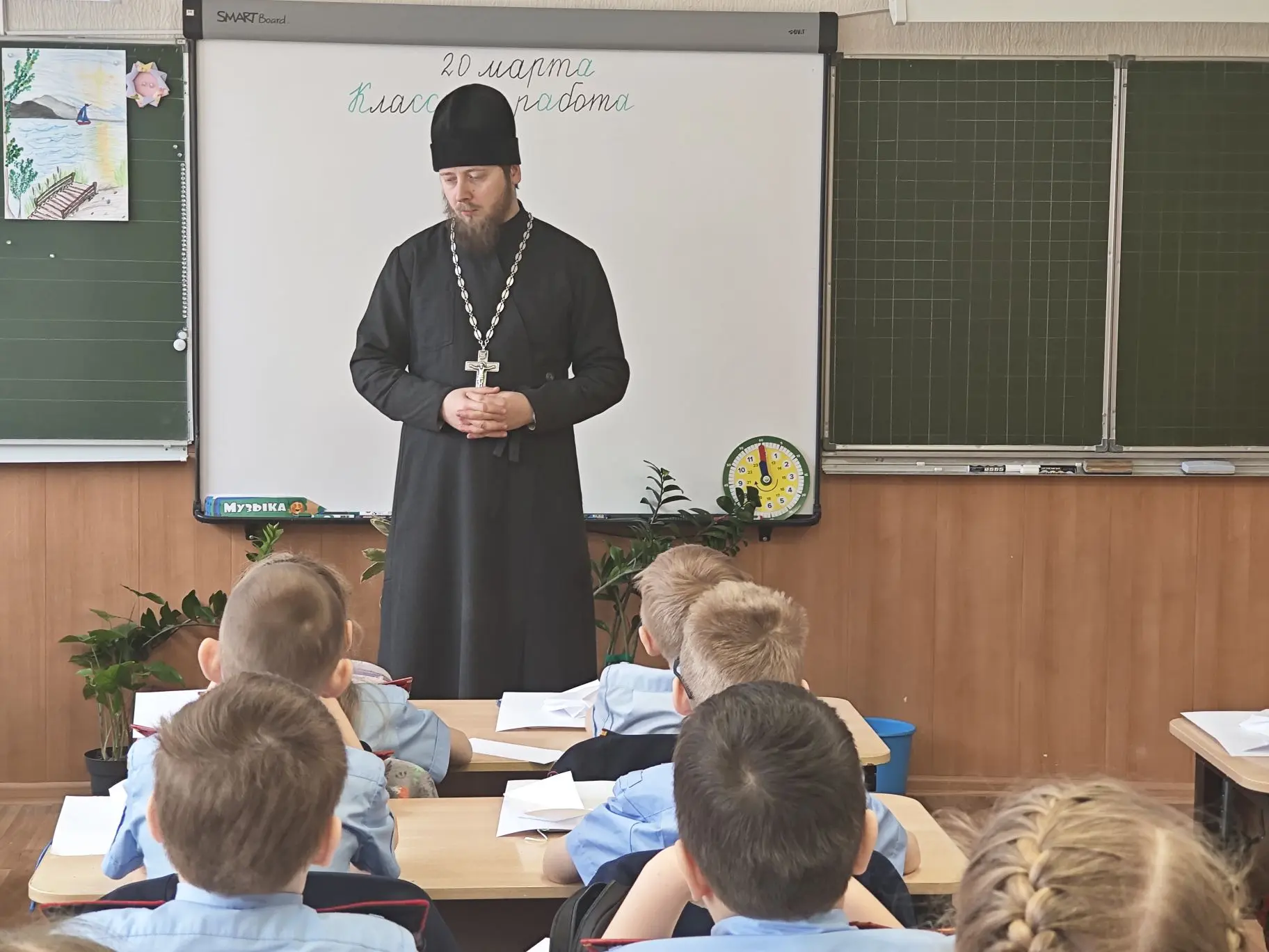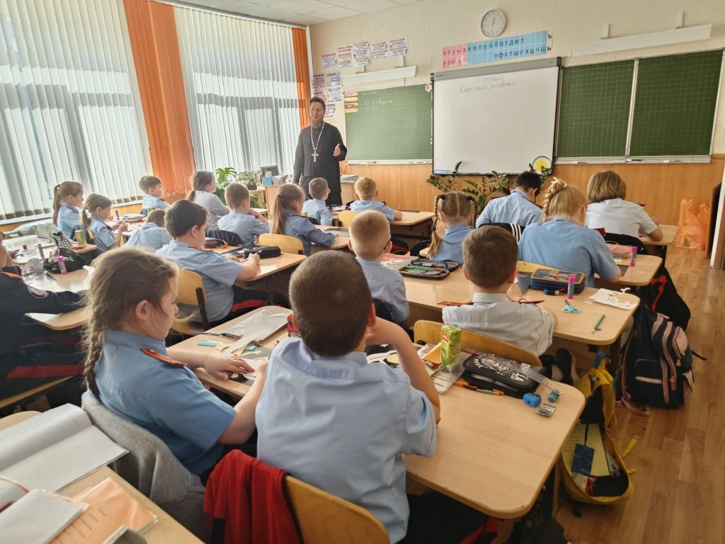 На этой неделе в нашей школе состоялась важная и тёплая встреча: отец Максим провёл духовно-нравственную беседу с учениками 2А и 3А классов. Разговор был посвящён вечным ценностям — доброте, уважению к старшим, честности и взаимопомощи.