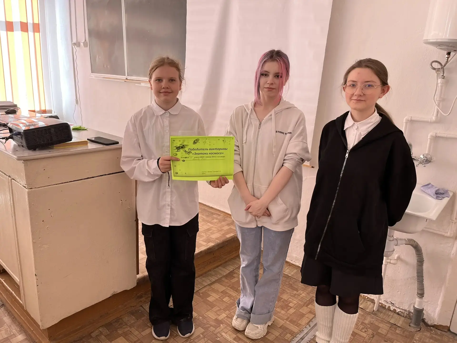 В предверии Дня космонавтики учащиеся 10А класса подготовили и опробировали на своих одноклассниках викторину "Знатоки космоса"