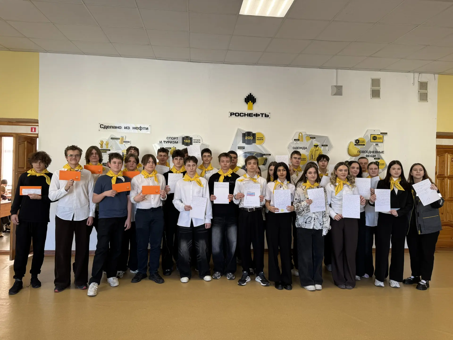 Сегодня, 18 февраля, ученики 9 и 10 Роснефть классов стали участниками акции « Письмо солдату», приуроченной к празднику 23 февраля. Акция была организована отделом внутренних коммуникаций АО «КНПЗ».