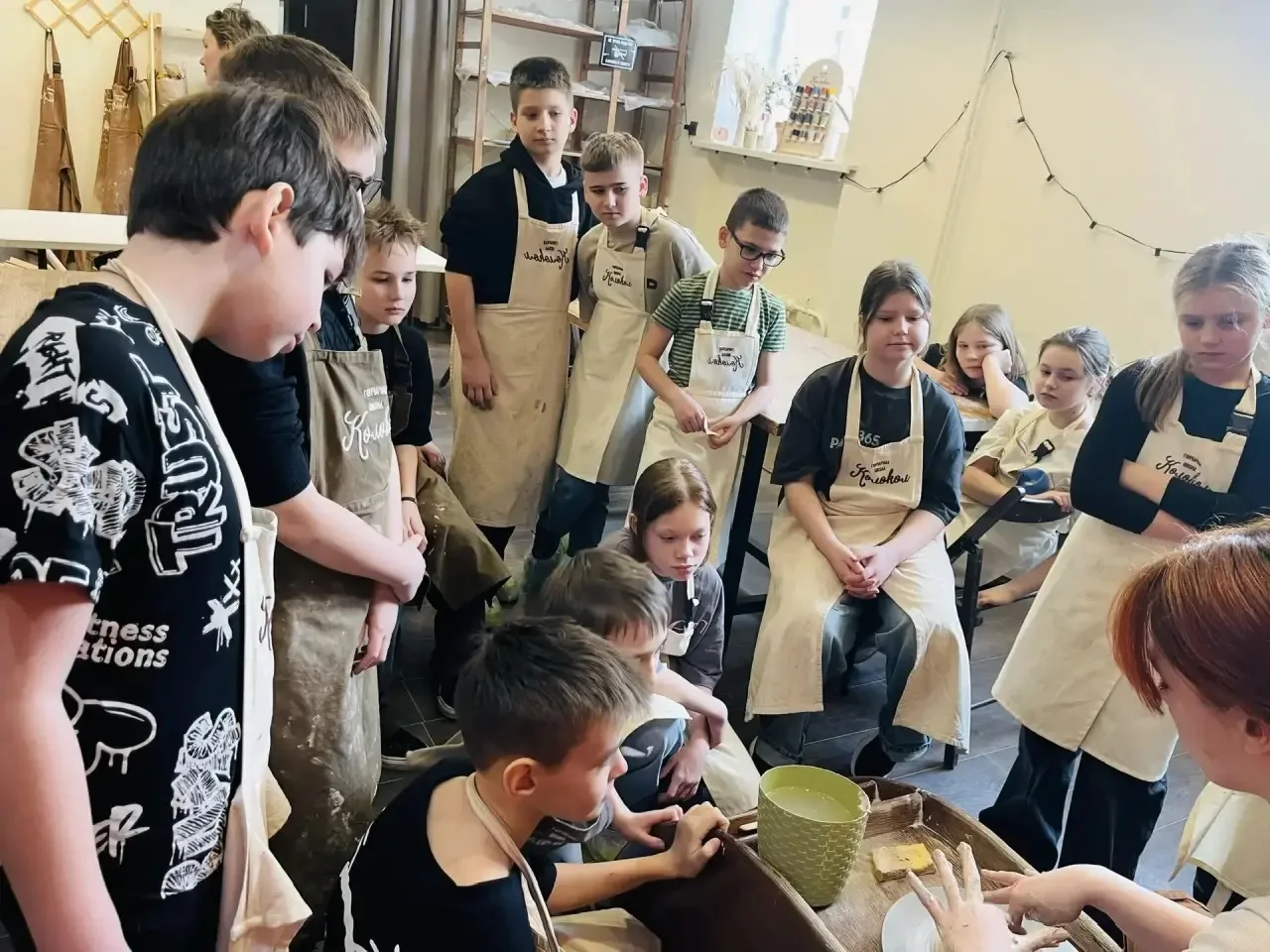 телерадиокомпанию «СКАТ», 3 б сходил в кино. А гимназисты 4б класса посетили гончарную мастерскую «Колокол» 🔔 и побывали ремесленниками-гончарами.
