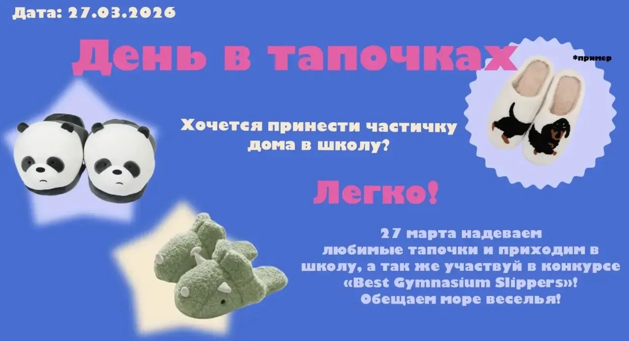 В эту пятницу, 27 числа, в нашей гимназии пройдёт необычная акция — «День в тапочках»!