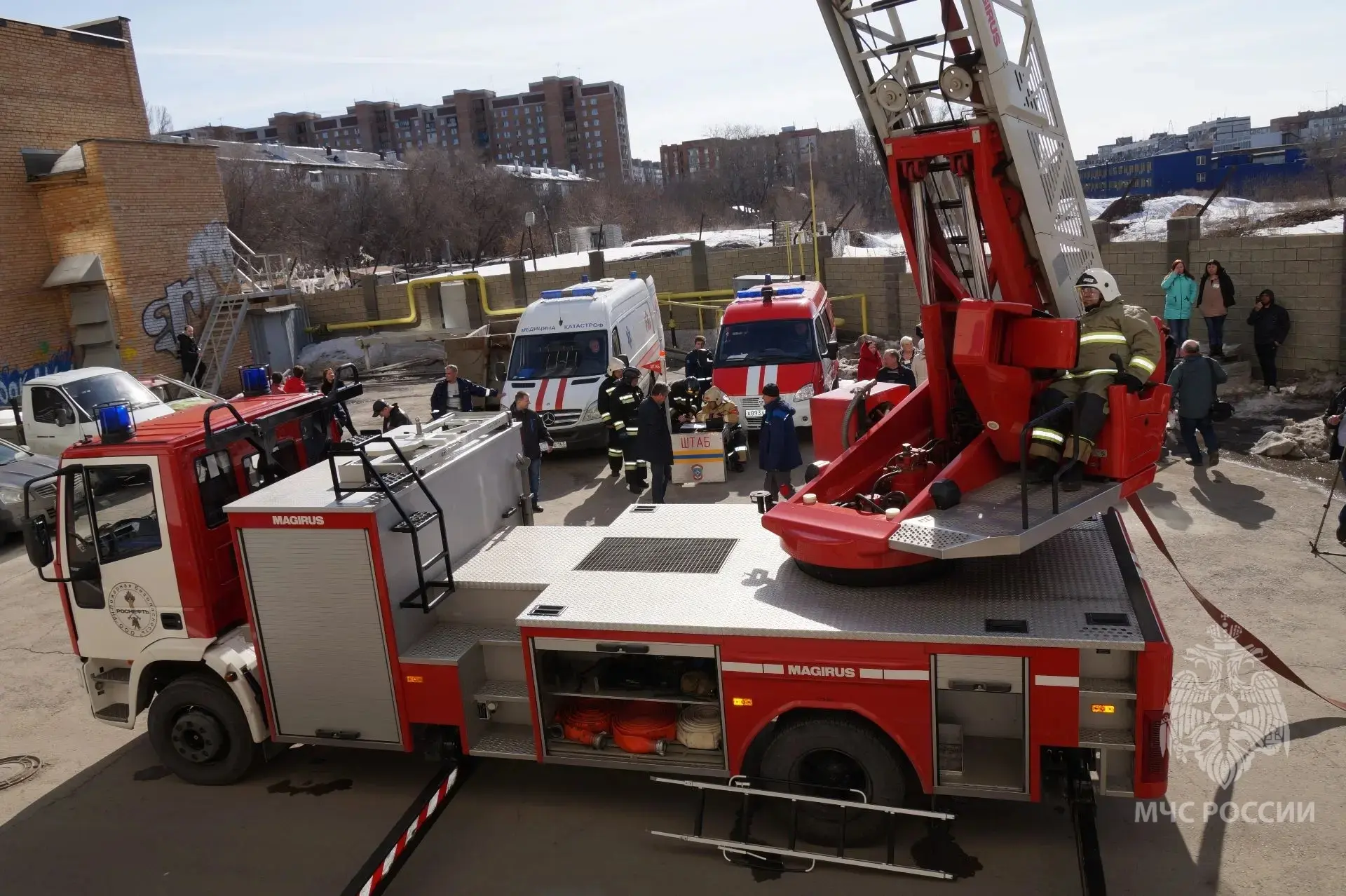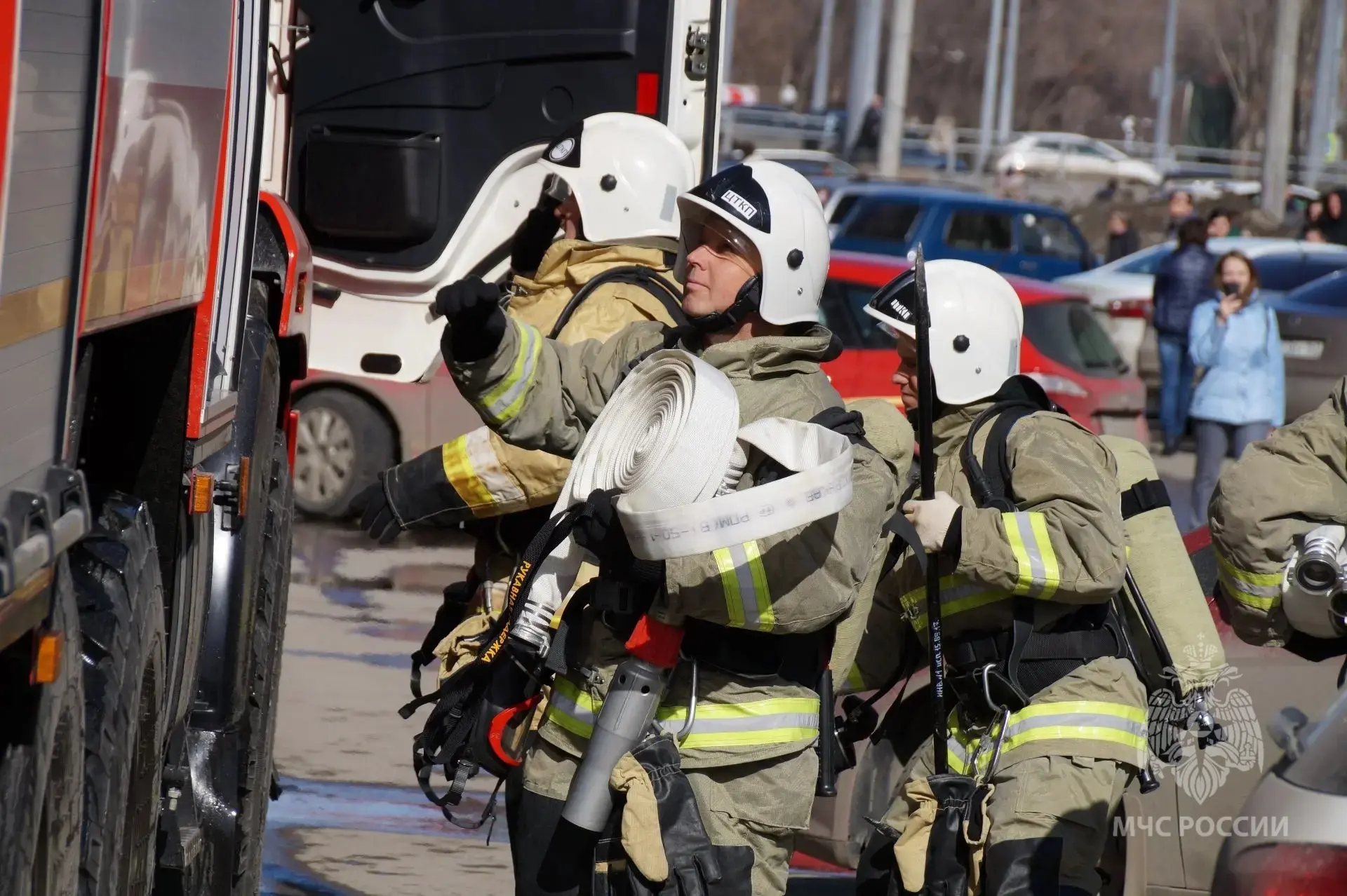 В Самарской области, помимо ручных лестниц, используются автолестницы высотой 30 и 50 метров для эвакуации и доставки снаряжения.