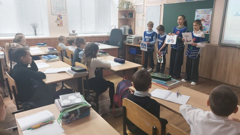 Отряд ЮИД школы №20 напоминает ученикам младших классов о важности соблюдения правил дорожного движения при катании на велосипедах и самокатах.