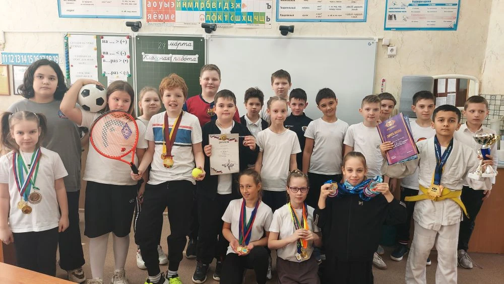 Уже с самого утра школа наполнилась атмосферой спортивного азарта. Ребята с удовольствием поддержали идею прийти в этот день в спортивной одежде. Кто-то выбрал экипировку любимого вида спорта – футбол, баскетбол, теннис, а кто-то продемонстрировал атрибутику своих спортивных команд. Особое внимание привлекли ученики, которые занимаются спортом профессионально: они с гордостью принесли свои медали и кубки, поделившись успехами с одноклассниками и вдохновив их на новые спортивные свершения.