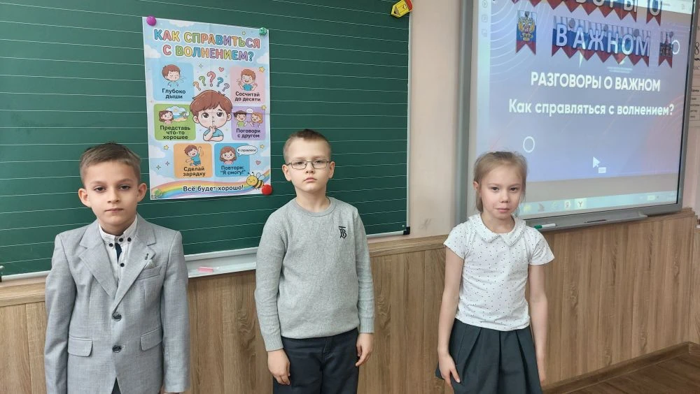 Тема занятий «Разговоры о важном» на этой неделе «Как справиться с волнением». Каждый из нас хотя бы раз испытывал волнение перед экзаменом, выступлением или каким-то важным событием. На занятиях ребята узнали какие есть простые и эффективные способы справляться с волнением. Так же научились правильно настраиваться на успех — ведь очень важно верить в себя и свои силы.