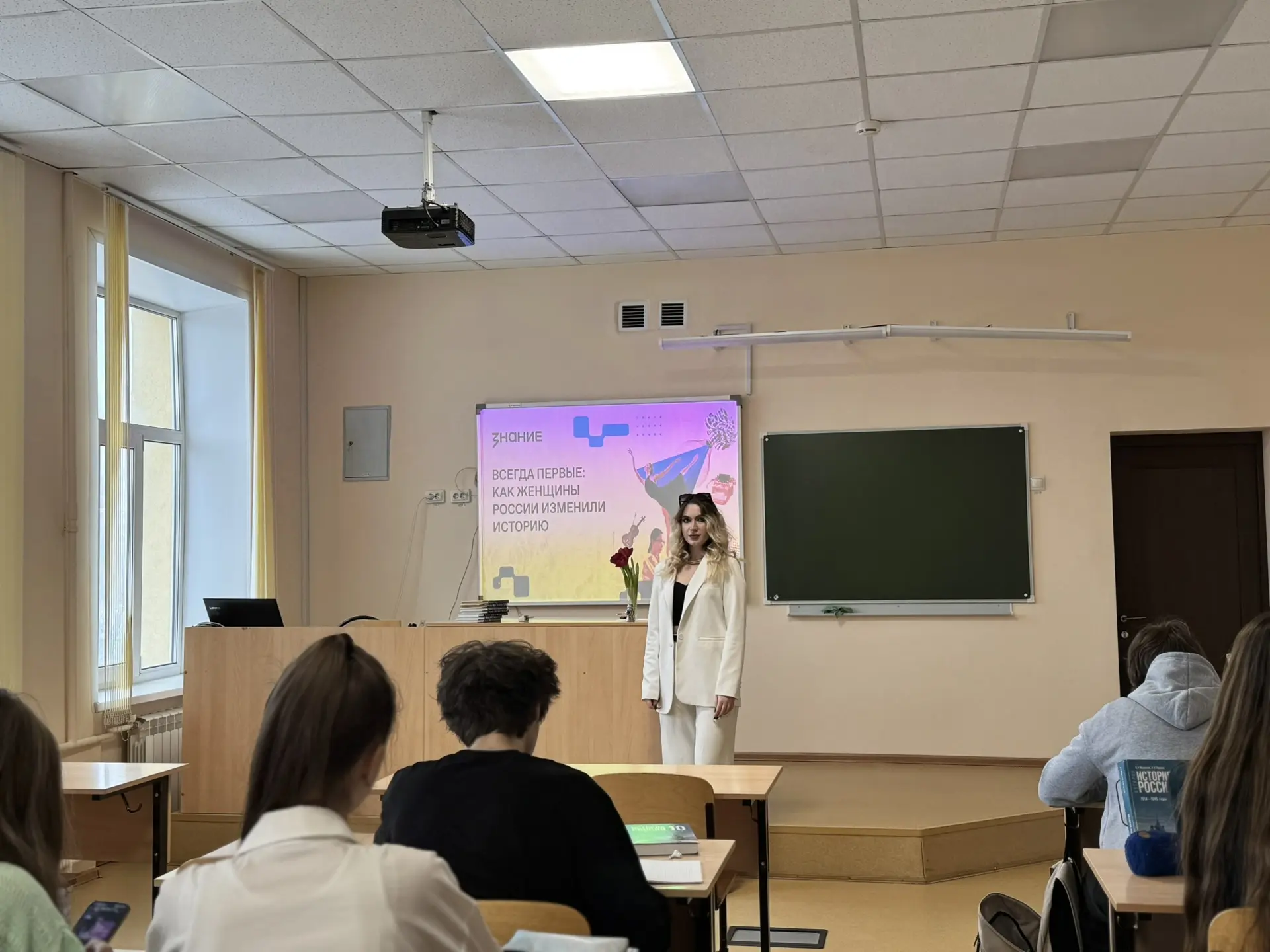 🎓 В преддверии праздника советником директора по воспитанию была проведена лекция «Всегда первые: как женщины России изменили историю», организованная Общероссийским общественно-государственной просветительской организацией «Российское общество Знание». Космос, наука, литература, политика — женщины России первыми открывали дороги, куда раньше не ступала нога человека. Эта лекция — про силу, стойкость и вклад, который невозможно переоценить.
