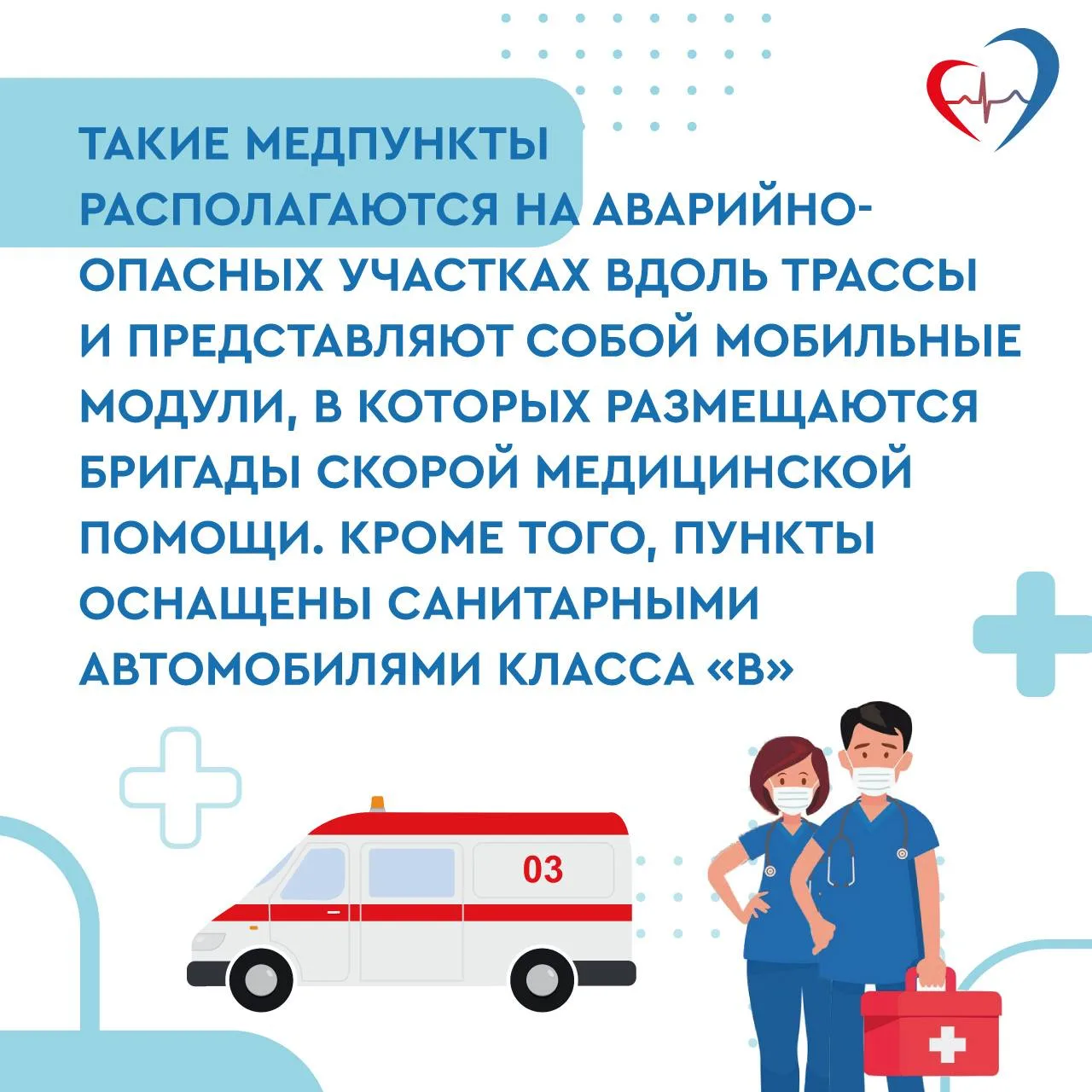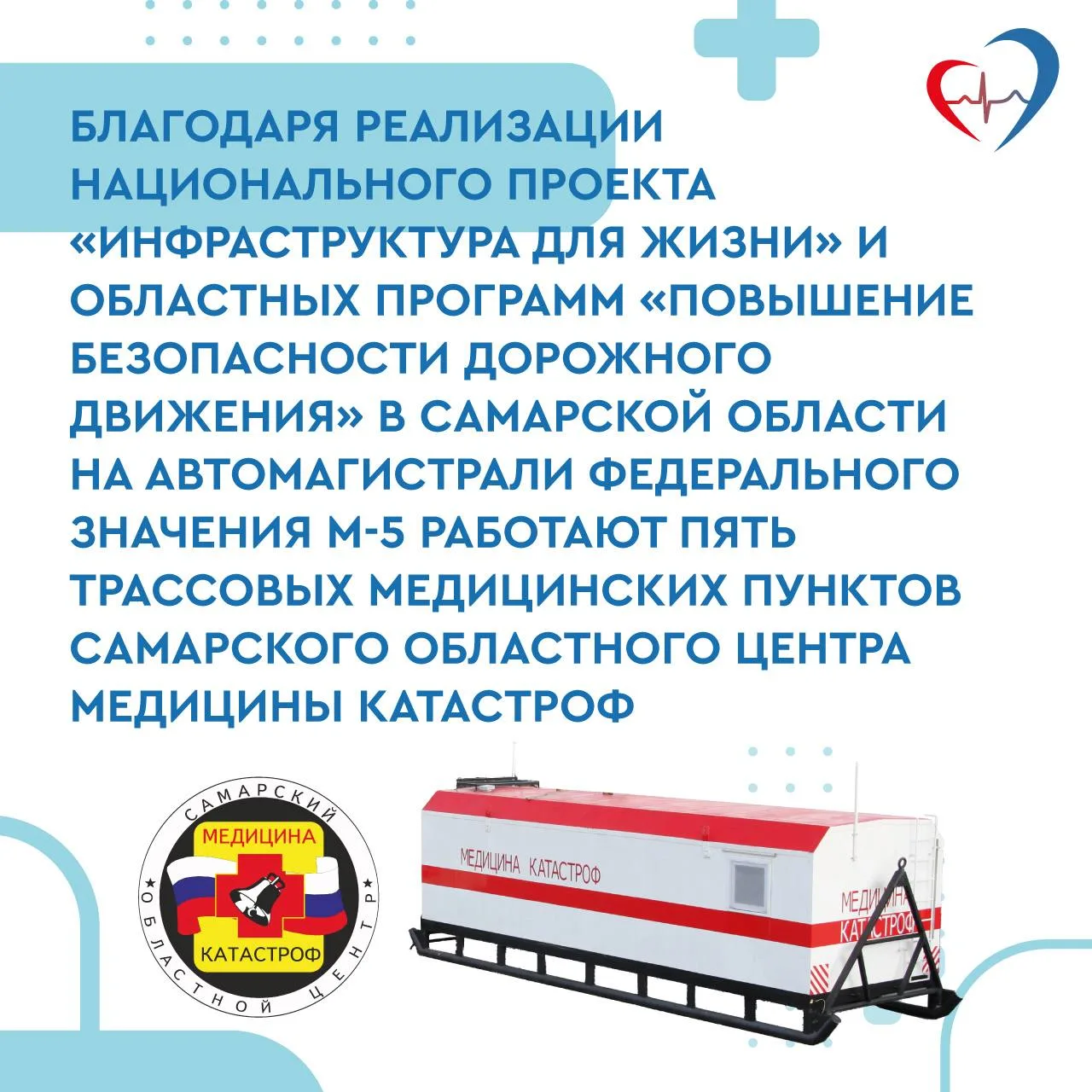 В сложившейся погодной обстановке напоминаем, что в Самарской области функционируют 5 трассовых медицинских пунктов