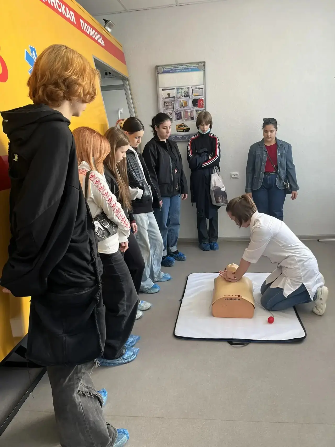Ребята попробовали себя в роли медсестры, учились оказывать первую помощь, познакомились с учебными аудиториями, где учащихся с радостью приняли на пару по анатомии!