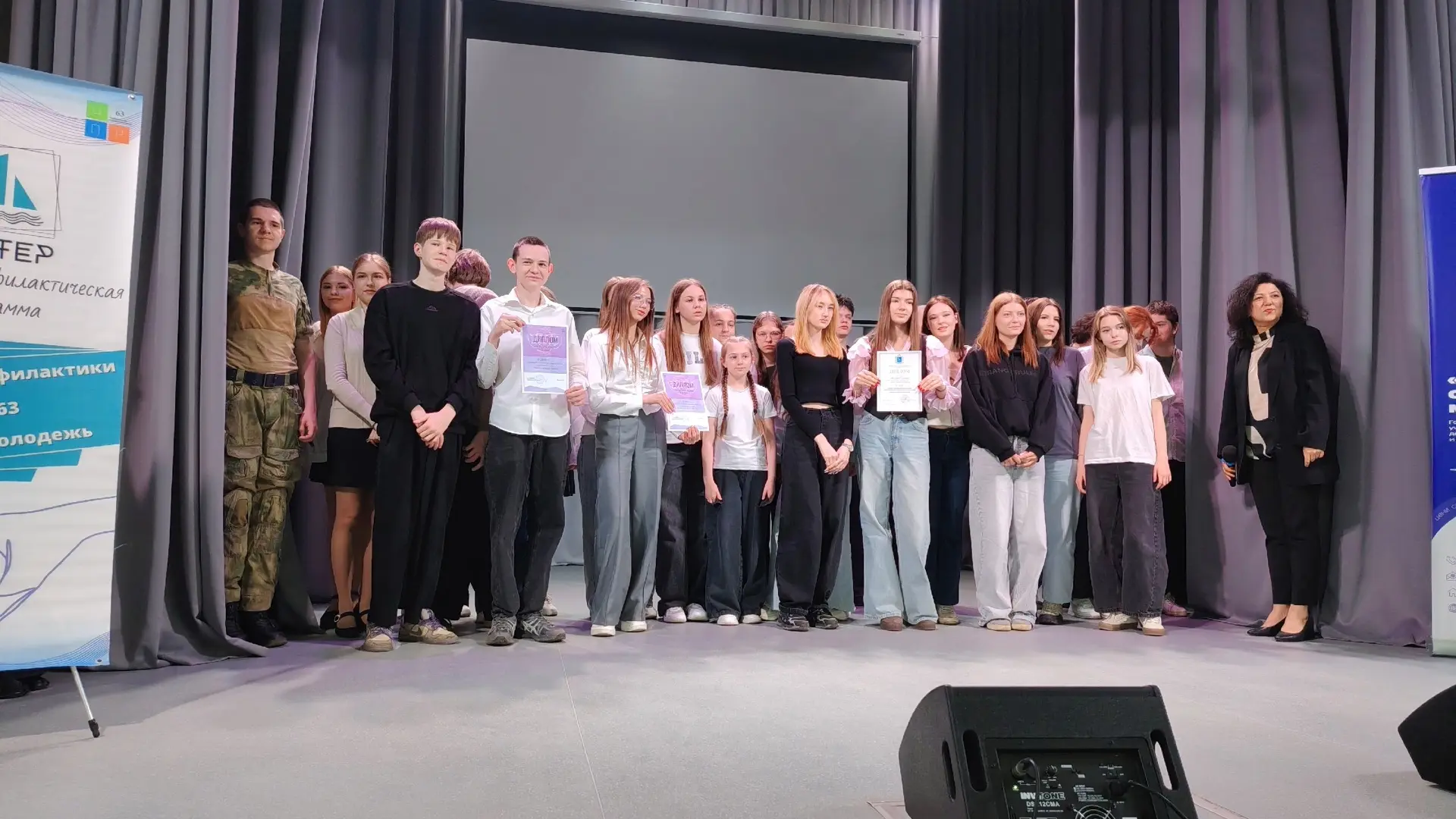 Ребята 9 класса впервые выступали на большой сцене, показав спектакль по авторскому сценарию "Билет в один конец", отражающий проблему подросткового экстремизма. И сделали это успешно! 🏆