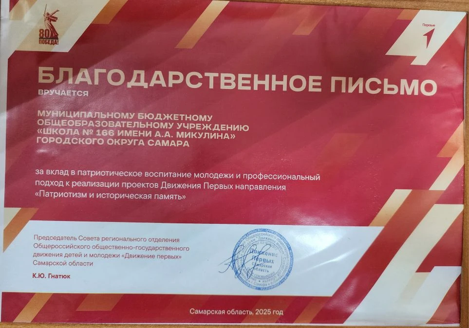 Первичка нашей школы была отмечена в числе лучших команд города в реализации проектов и акций "Движения Первых". 👏👏👏