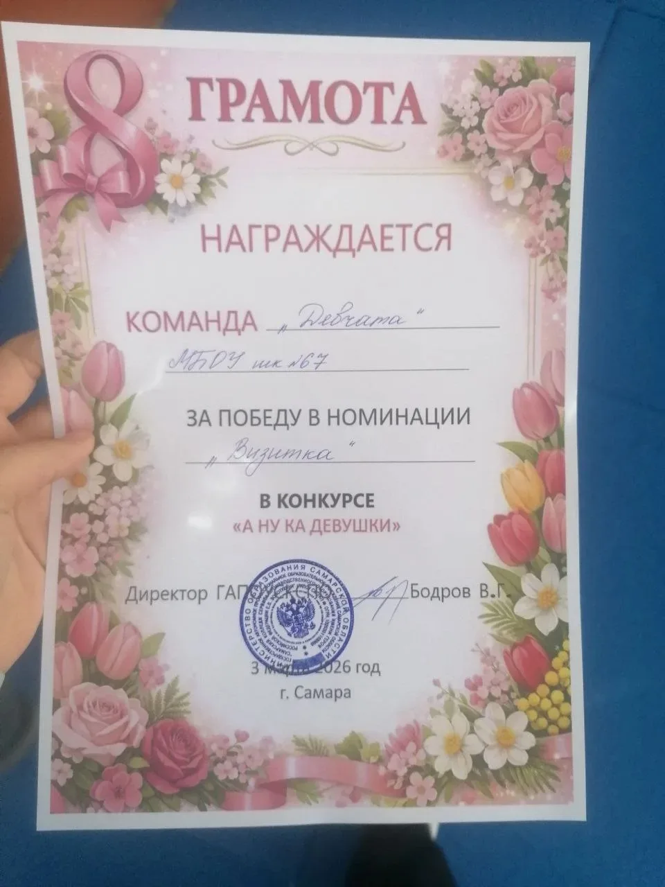 Поздравляем команду Школы № 67 «Девчата» с победой в номинации «Визитка» на конкурсе «А ну‑ка, девушки!» 🎉