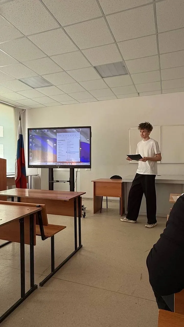Во время линейки обучающиеся 8Б класса получили обложки на паспорт и значки за участие во Всероссийской акции «Мы — граждане России» от Движения Первых. ⭐️📘
