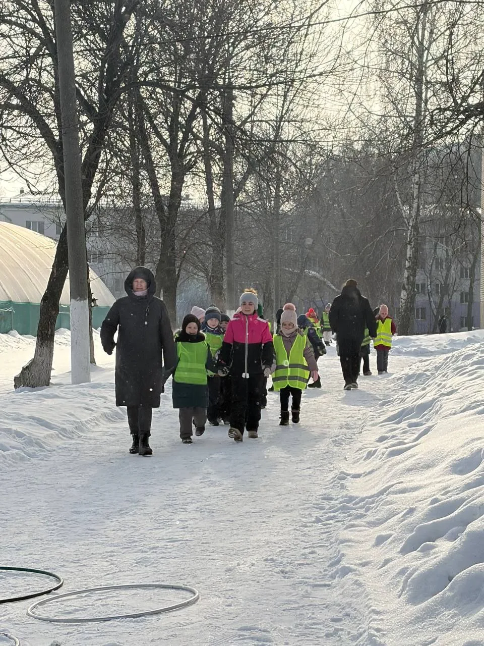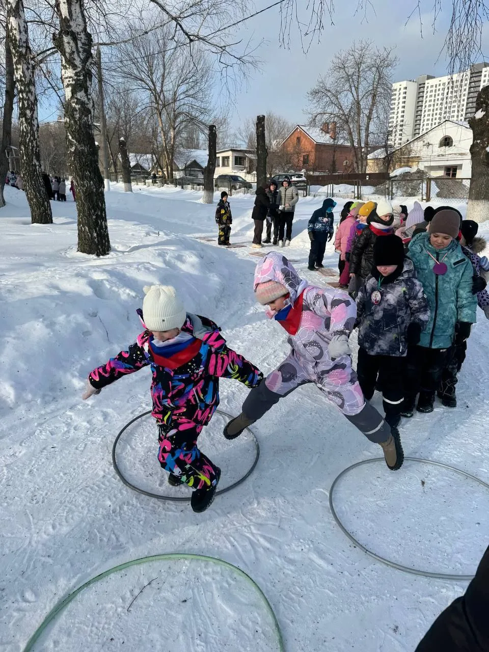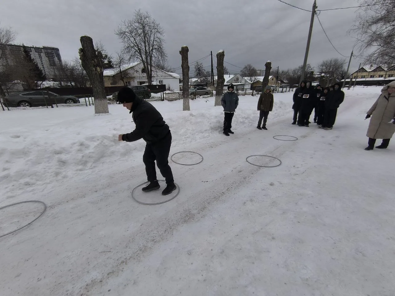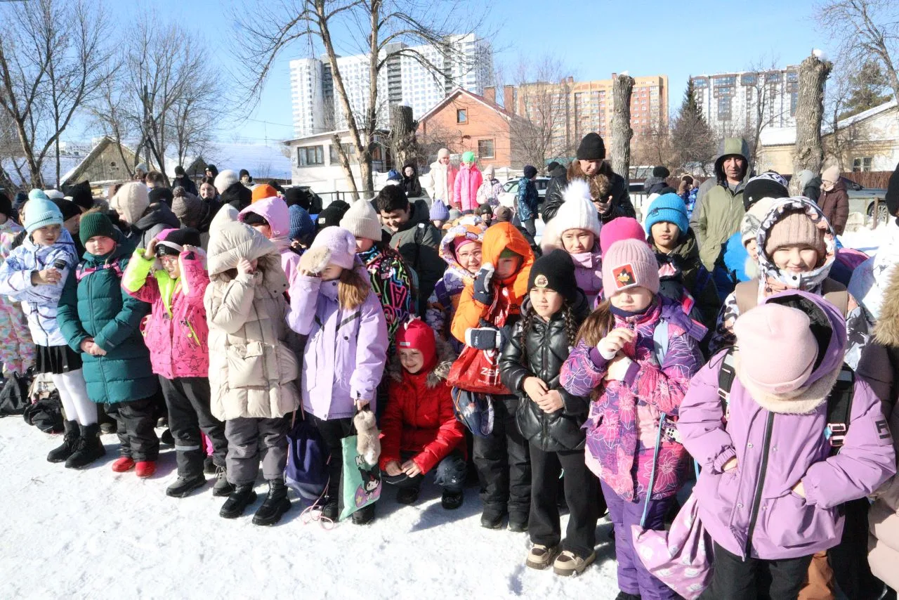 Соревнования проходили на свежем воздухе — ребята проходили испытания на различных станциях. Лёгкий мороз и патриотическая музыка создавали особую атмосферу, вдохновляя школьников на победу и сплочённость.