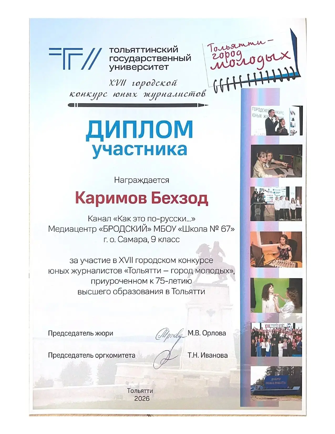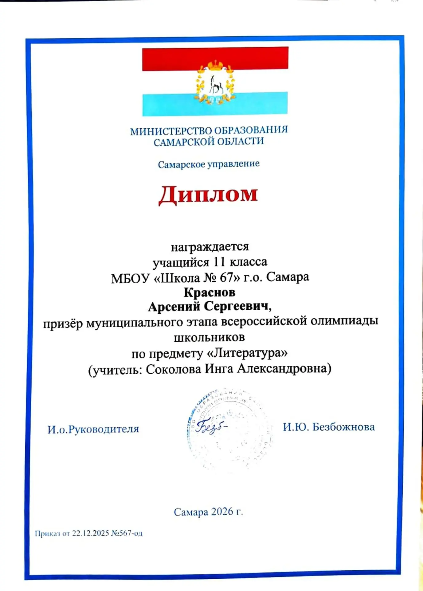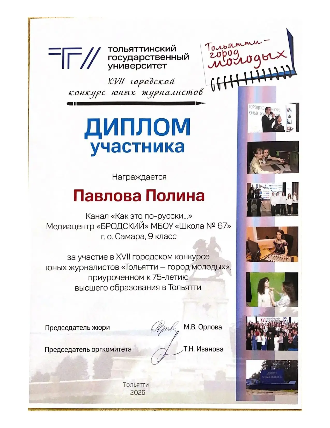 ✨ Гузанова Полина удостоена Диплома призёра муниципального этапа Всероссийской олимпиады школьников по русскому языку.