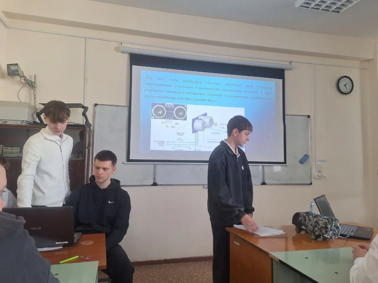 Ребята представили проект "Макет ультразвуковой станции" и достойно выступили перед экспертами.