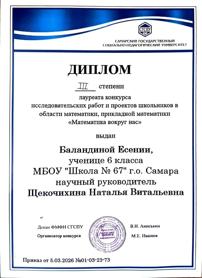 Сергеева Екатерина (10 А класс), Павлова Полина (9 В класс) и Головщикова Яна (5 А класс) стали лауреатами пятой межрегиональной конференции с международным участием «Наука. Культура. Искусство»!