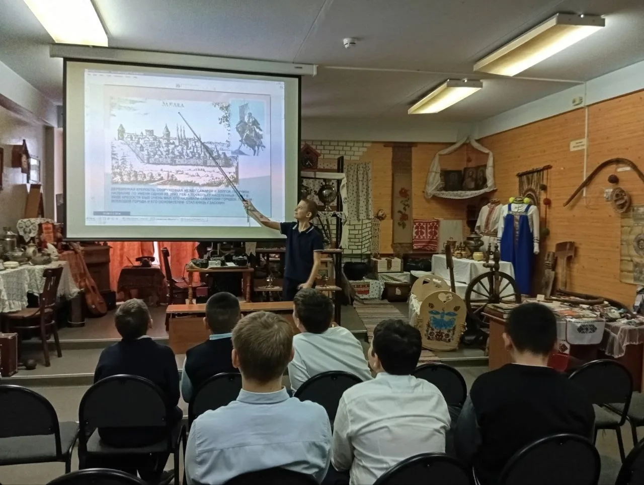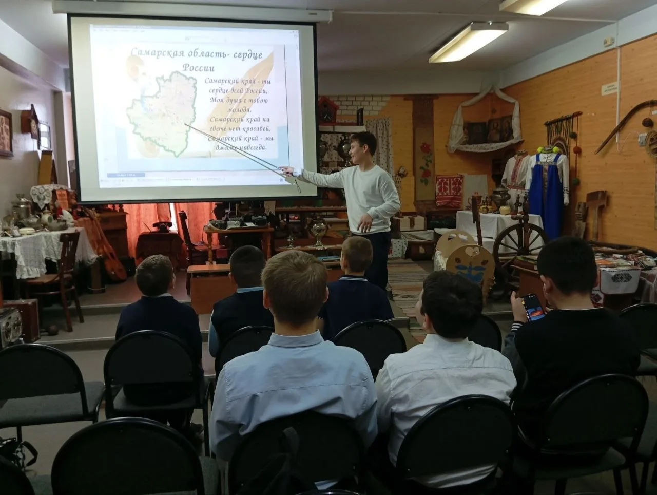 В школьном музее посёлка "Яблонька" для пятиклассников прошло занятие, посвящённое 175-летию Самарской губернии. Занятие проводили юные экскурсоводы музея.