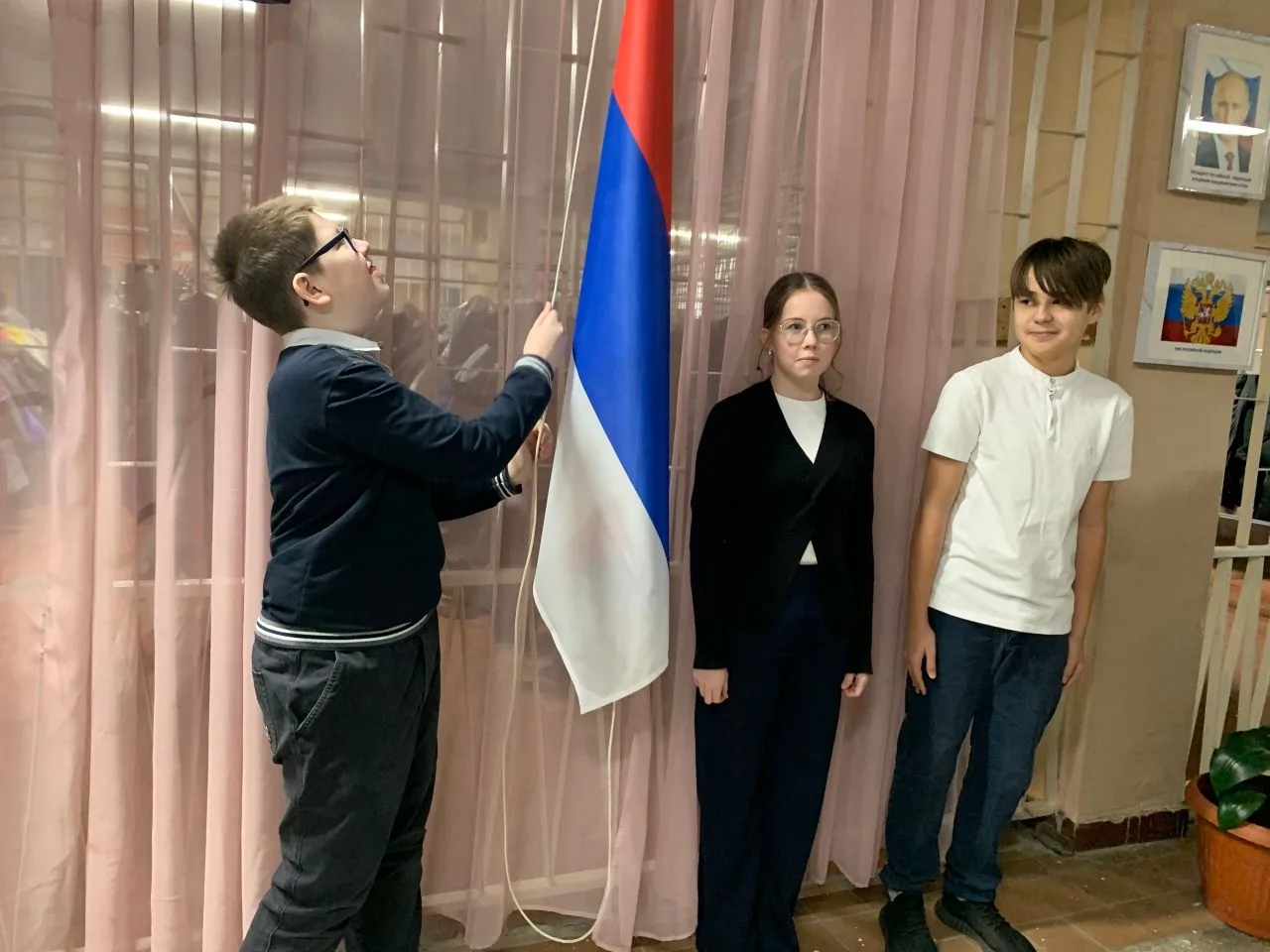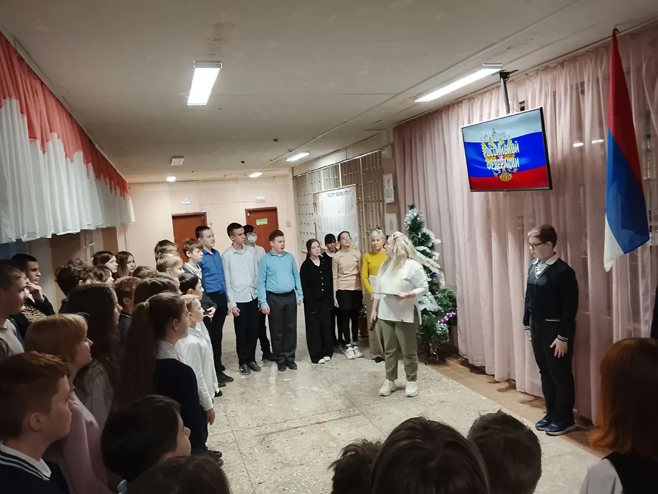 Утро понедельника 12 января- новая неделя началась с традиционной линейки, посвященной поднятию флага и исполнению гимна Российской Федерации🇷🇺 На этой неделе Флаг поднимали ученики 6 классов!
