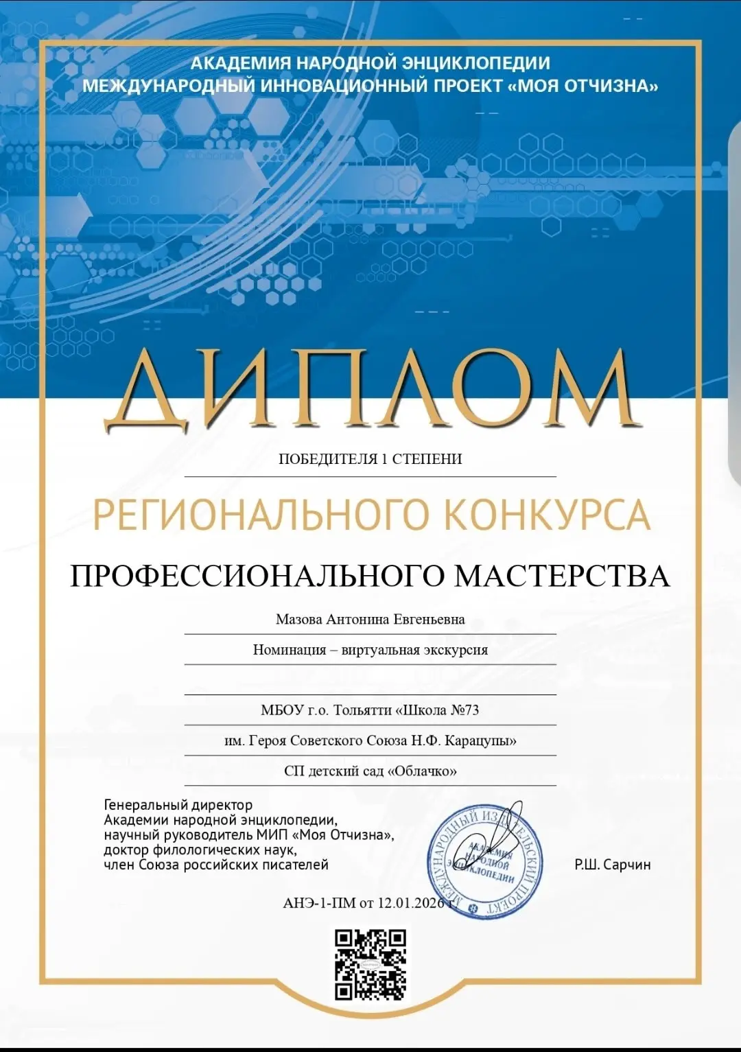 Поздравляем воспитателя 18 группы Мазову Антонину Евгеньевну с победой в конкурсе педагогического мастерства! Желаем дальнейших успехов!