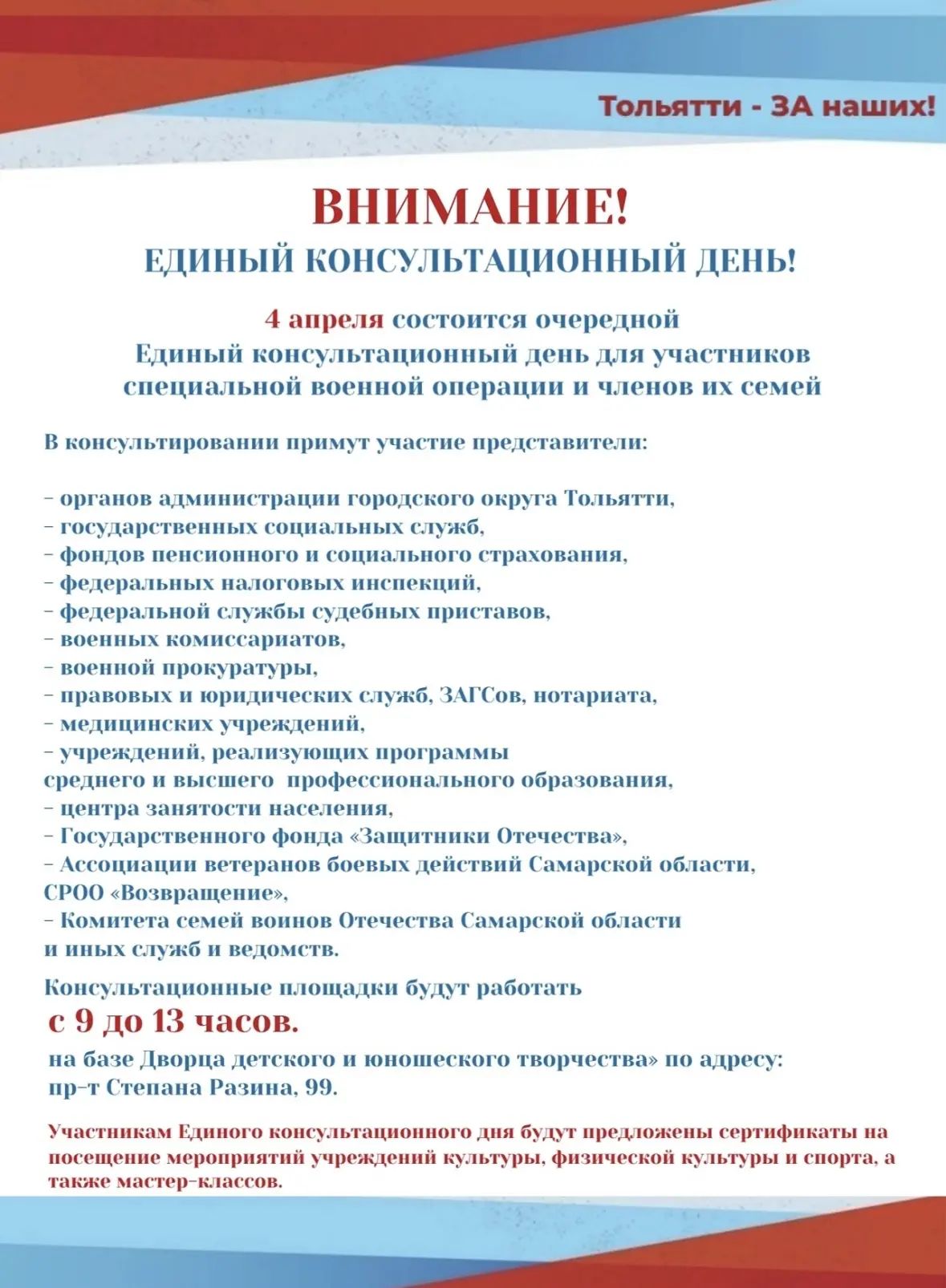 Приглашаем участников СВО и семьи наших военнослужащих на Единый консультационный день