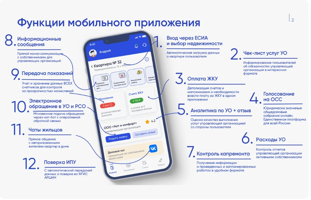 Активность пользователей подтверждает, что приложение превратилось в действенный механизм решения жилищных вопросов. Среди них наиболее востребованные: оплата счетов и передача показаний, проведение онлайн-голосований на общих собраниях собственников, отправление обращений в управляющую организацию. С помощью приложения в управляющие организации уже отправлено более 5,4 млн обращений, из них свыше 420 тыс. — коллективные.