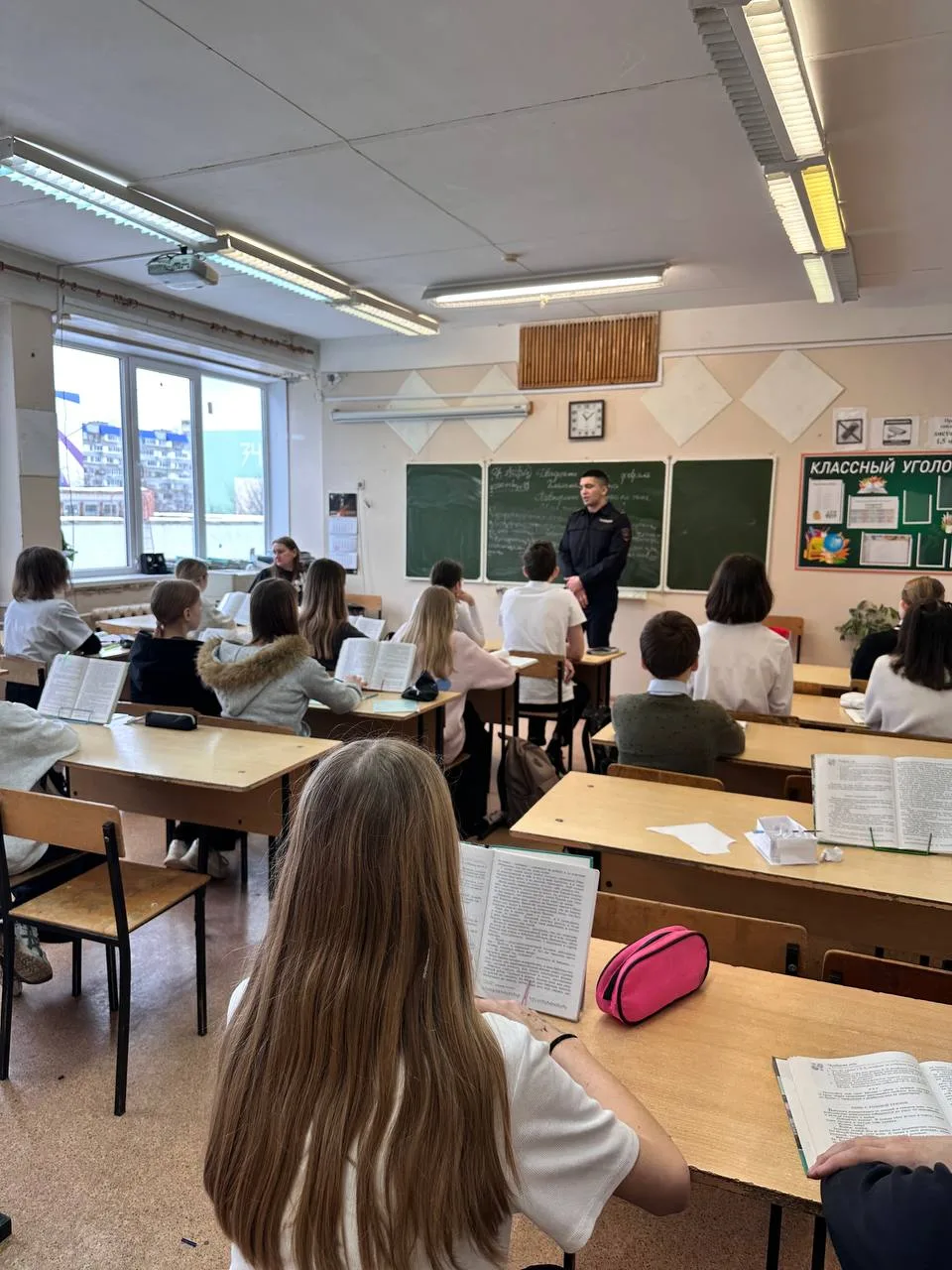 С целью напоминания детям о необходимости соблюдения правил безопасного поведения на дорогах, для учащихся 5-В, 5-Д, 6-В и 6-Д классов состоялись встречи с лейтенантом полиции, госинспектором РЭО Аскеровым Д. Ф. 👮♂️