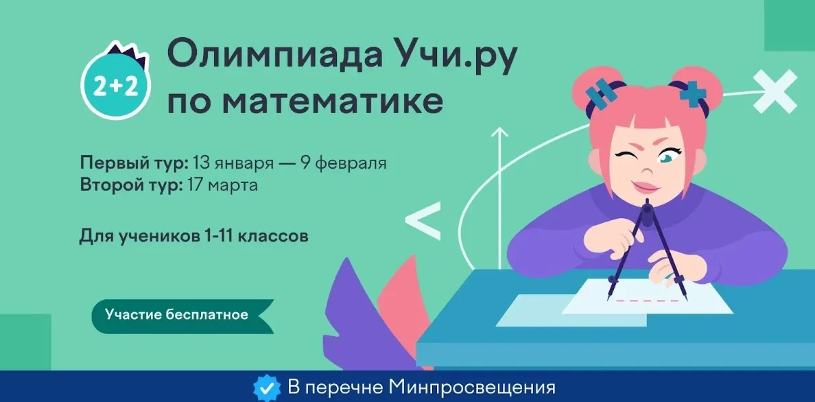Приглашаем учеников 1–11 классов начать новый год вместе с Учи.ру — через участие в *бесплатной всероссийской перечневой олимпиаде по математике*.
