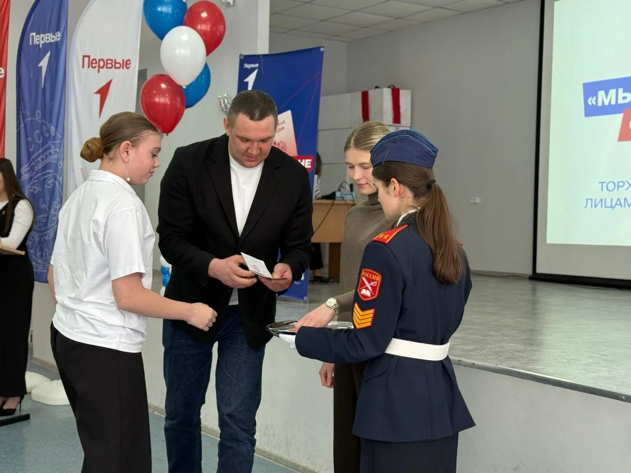 Поздравить ребят и вручить документы пришли депутат Тольяттинской городской думы Роман Андреевич Дидковский и Заслуженный мастер спорта России по каратэ, чемпионка Европы и бронзовый призер Чемпионата Мира Анна Сергеевна Чернышева.